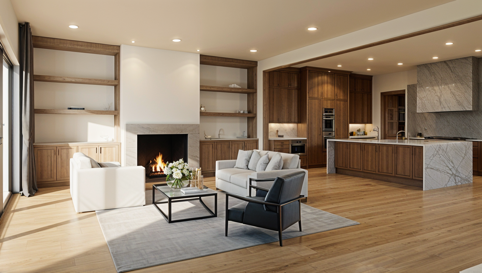 render a photorealistic 3d perspective of this house keep the current materials just enhance them split face limestone walls cream stone floors keep model geometry the same windows doors roof walls enhance the current materials and make the landscape nicer vegetation detailed textures in glass reflections and a vibrant clear sky with a few clouds add slight lens flare and light atmospheric depth render in hyper realistic architectural visualization quality 8k resolution