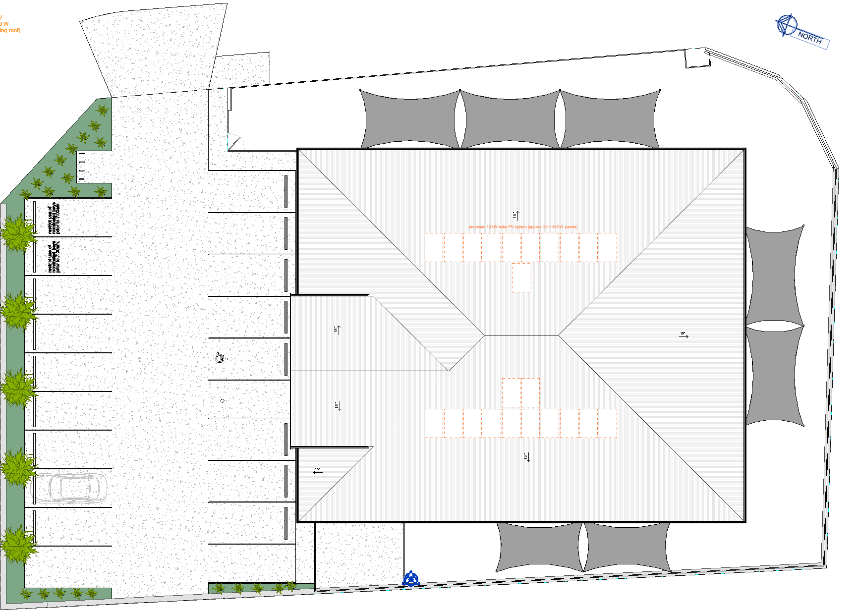 make the roof metal and add grass instead of paving left side in the parking to be bitumen