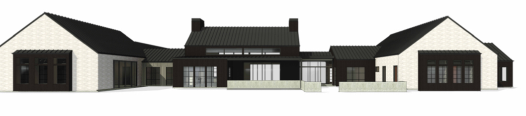 render a modern residential house with a sleek minimalist design the exterior walls are a blend of off white and soft cream with a subtle texture the roof and window frames are a rich matte black large windows let in natural light reflecting a contemporary style the atmosphere is calm and serene set against a backdrop of a clear blue sky add some greenery around the perimeter to enhance the tranquility and balance of the scene