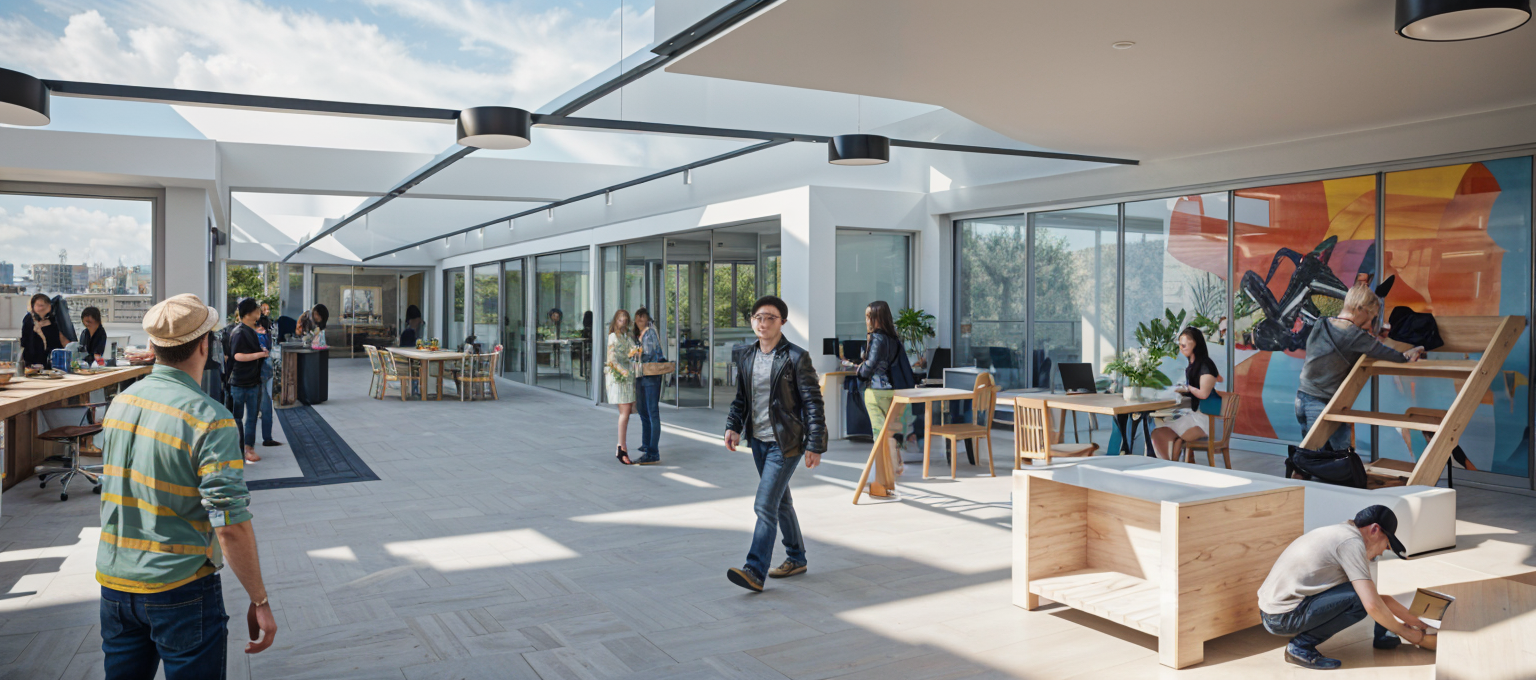add a glass partition wall with wood frames x3 above the small kitchen backsplash wooden door on the right following the glass light mat beige oak wood flooring installed in a herringbone pattern 90 degrees architecture