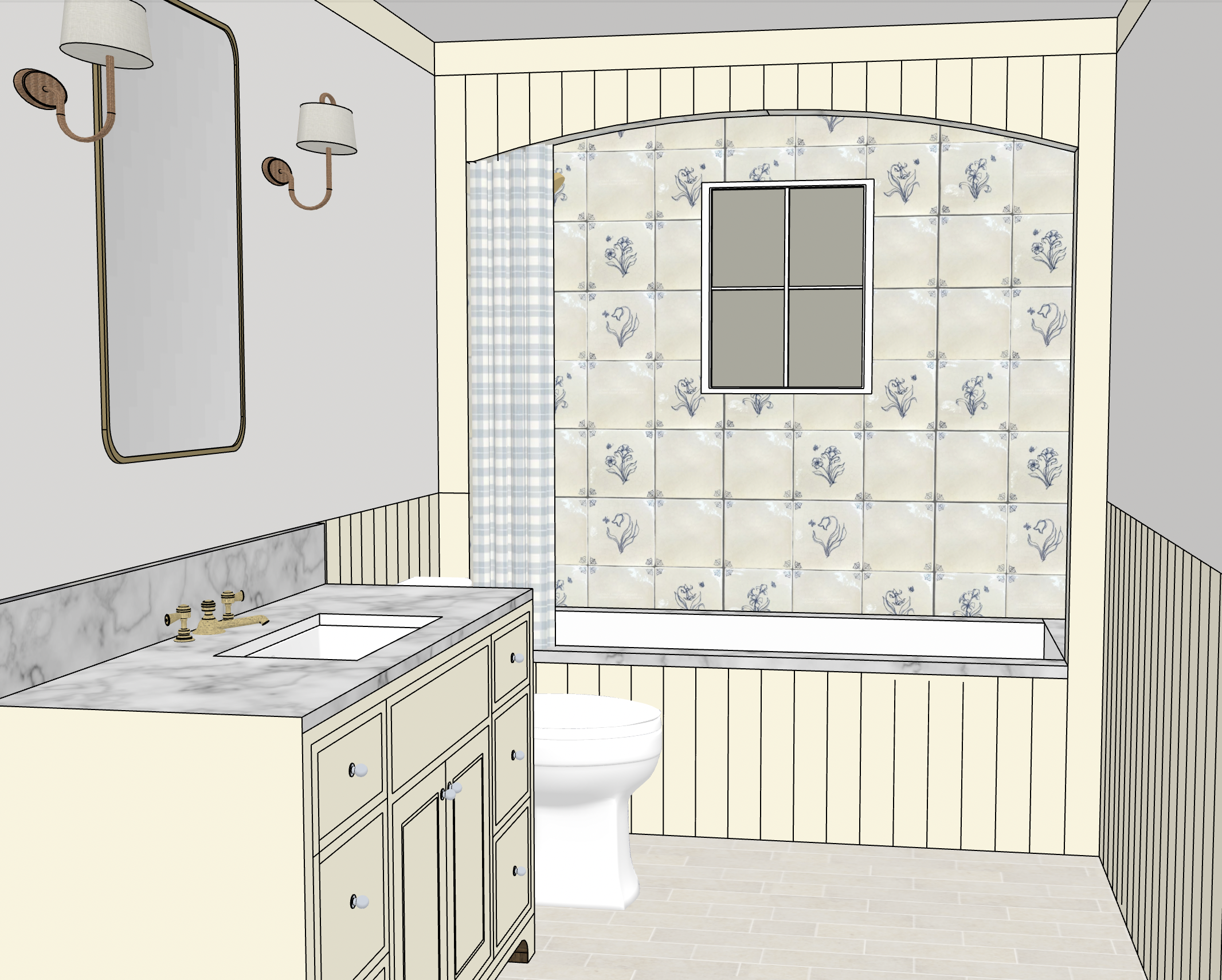 high resolution rendering project out backsplash and chair rail lighten yellow color