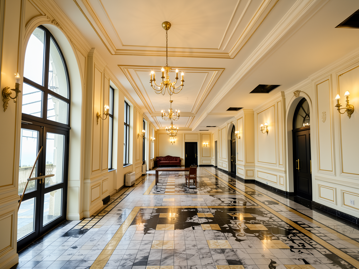 create an exact copy of this image with the following amendments only roof of building third from right is red tin left gable wall of building second from right is white