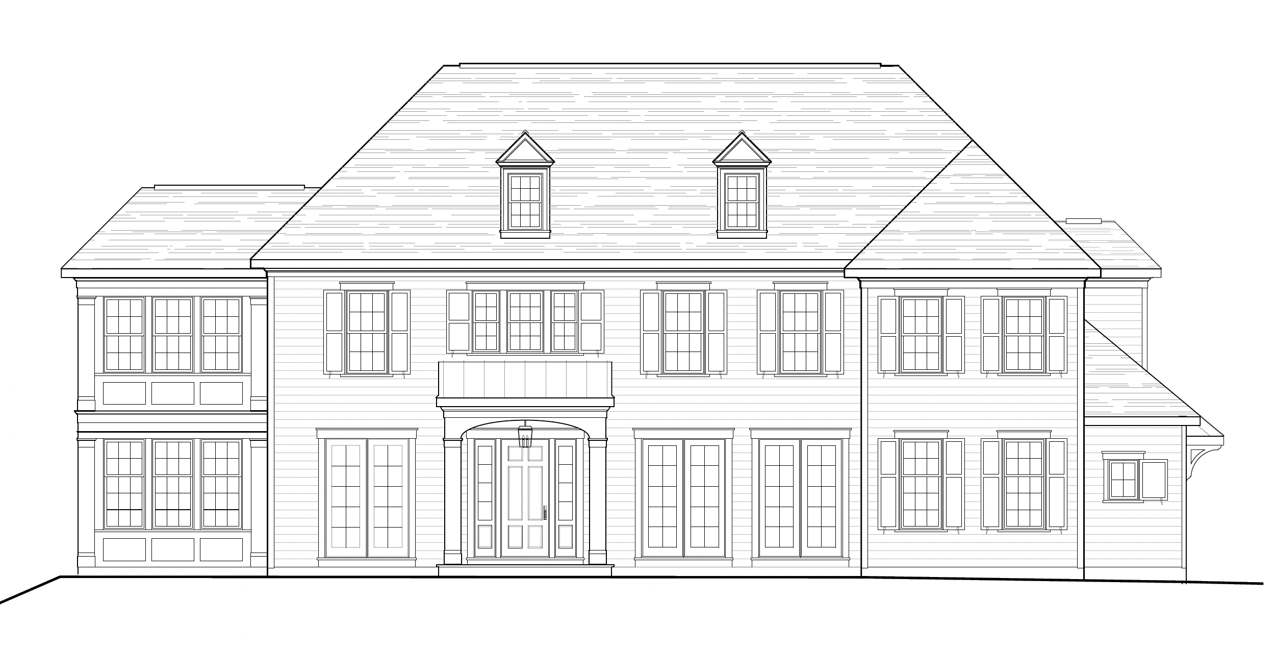 create a clean high resolution 2d architectural front elevation from the provided drawing maintain exact geometry and proportions do not reinterpret or redesign any elements use flat minimal color fills with no textures shadows or rendering effects apply the following materials and colors consistently across all matching elements roof dark slate tone gutters downspouts and all metal roof elements including the small roof awning above the front door bronze siding and trim sherwin williams heron plume shutters sherwin williams evergreen fog all shutters must match exactly in color and tone including the single shutter at the garage windows andersen terratone front door and sidelights mahogany critical constraints do not vary colors between similar elements do not introduce alternate tones or accents keep all shutters identical in color all metal elements must be the same bronze color style crisp architectural elevation consistent lineweights white background no landscaping or perspective