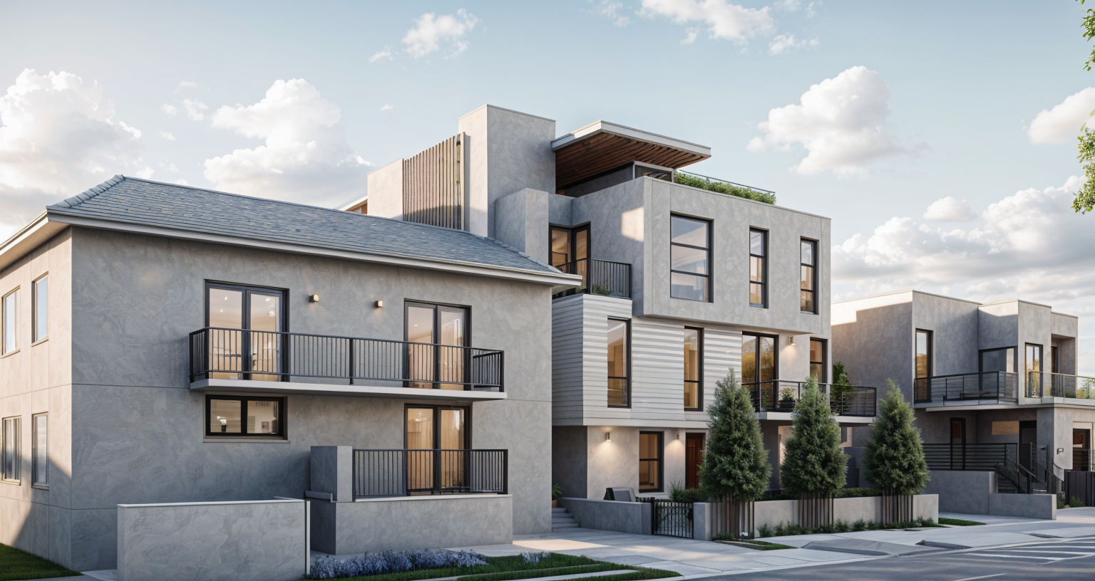 modern minimalist bakery interior with a metallic counter wooden shelves in the back with bread baskets side wall with white tiles and the sign los santi s