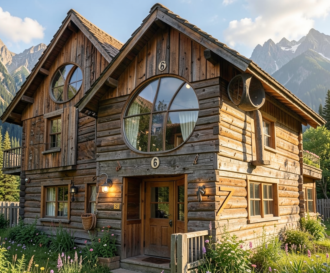 football house made of wood mountains basketball hoop on side of home football door