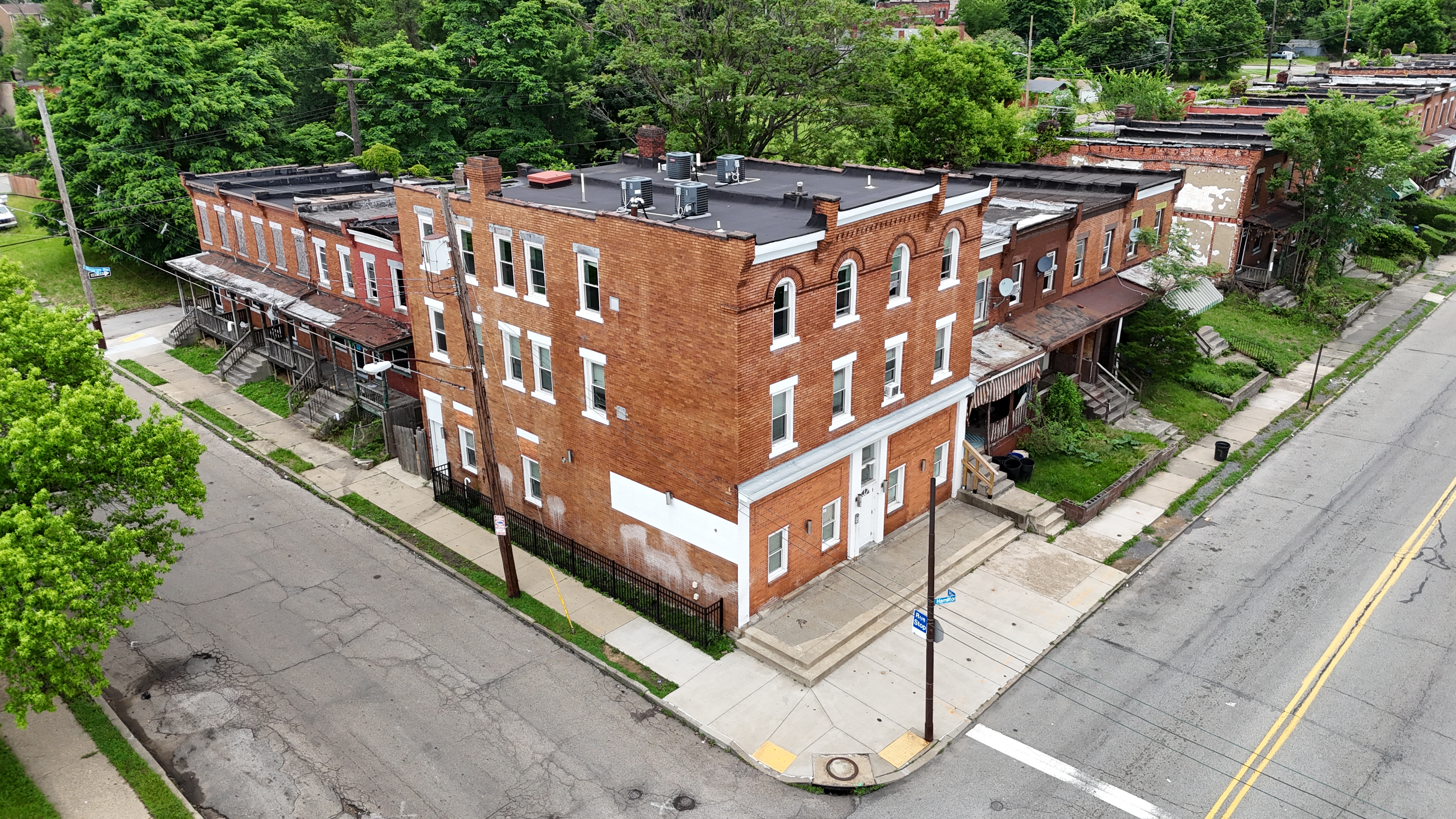 make this building new and pristine with a new roof the first floor should have storefront window and door