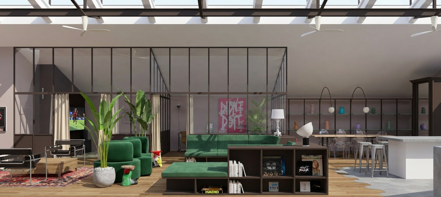 create a warm bright and inviting rendering of this new stair railing the black areas are wall cavities leave these blank and white since this is meant to appear as a cut section through the stairs the foreground should be blank also at the top of the stair directly beyond view is a dining room with a sliding glass door use simple decoration show the outdoors beyond the sliding glass door don t show a slider or furniture at the bottom of the stairs the railing is black