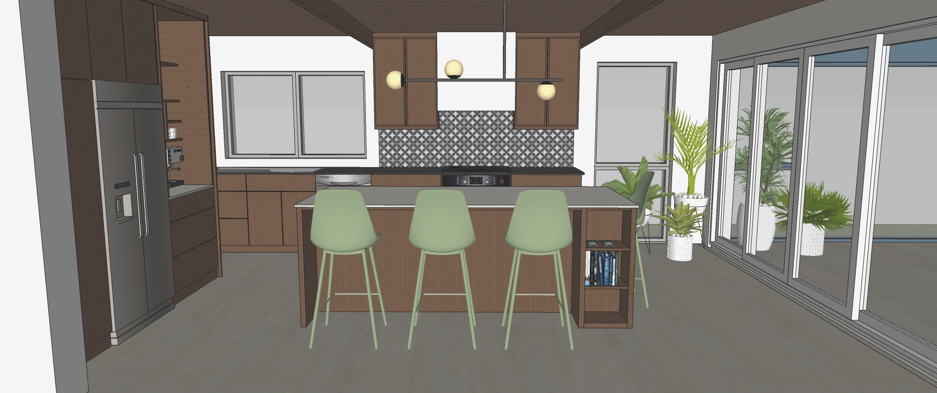 make this drawing as close to a photo as possible and add a seaside landscape behind the windows