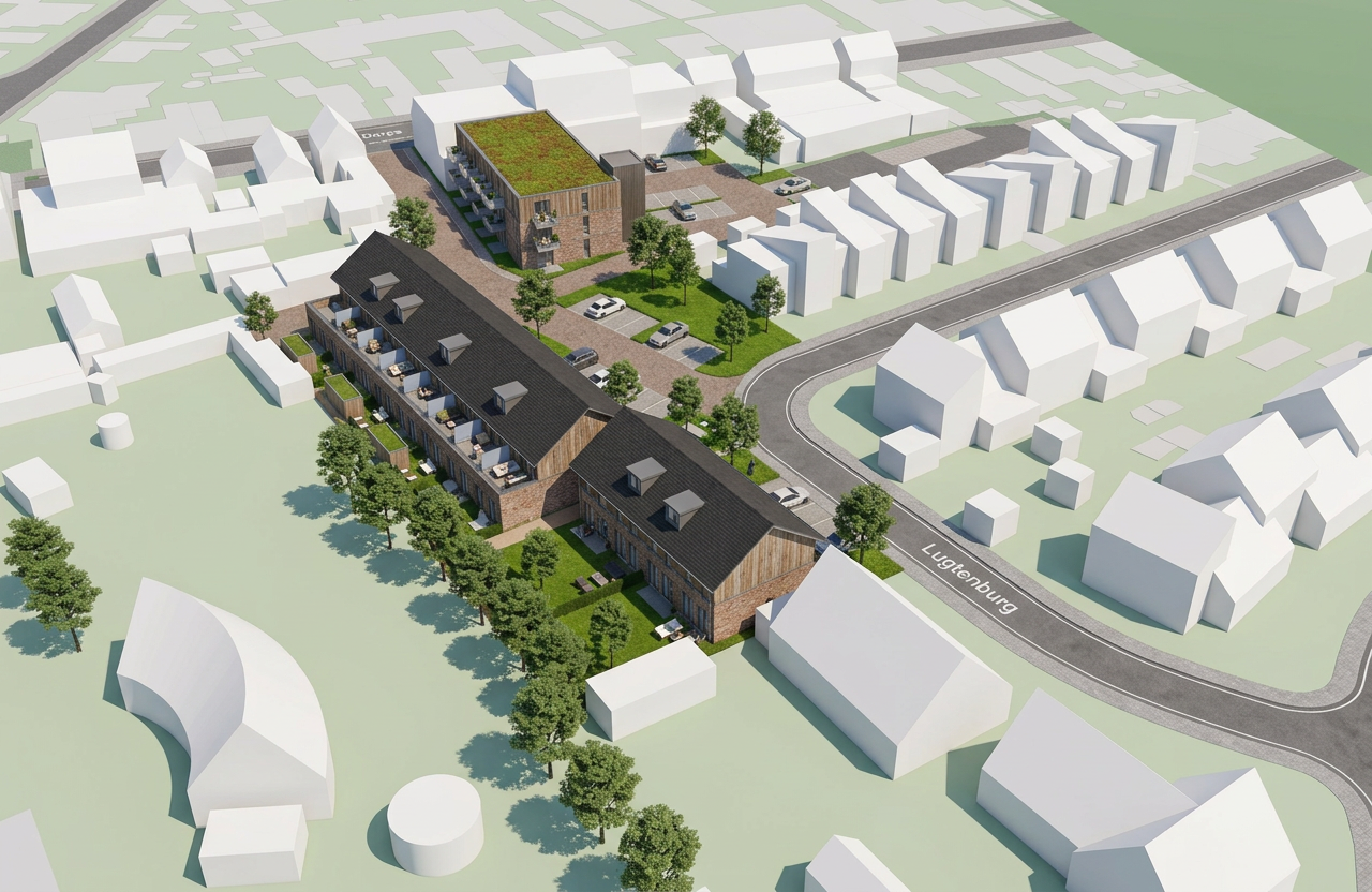take this semi final render and enhance realism without altering any of the current image s geometry features or objects as well as image orientation no cropping zooming etc and make it 4k do not add any new objects targeted material enhancement on the three ceiling pendants apply a high contrast champagne gold brushed metal finish to the semi circular bases the cylindrical lamp shades must feature a honed travertine or light alabaster stone texture with visible grain and organic micro details increase surface specularity and micro shadows to define material depth maintain the existing 3d geometry and silhouette exactly do not alter the mesh or structural proportions focus exclusively on material clarity texture definition and realistic light interaction