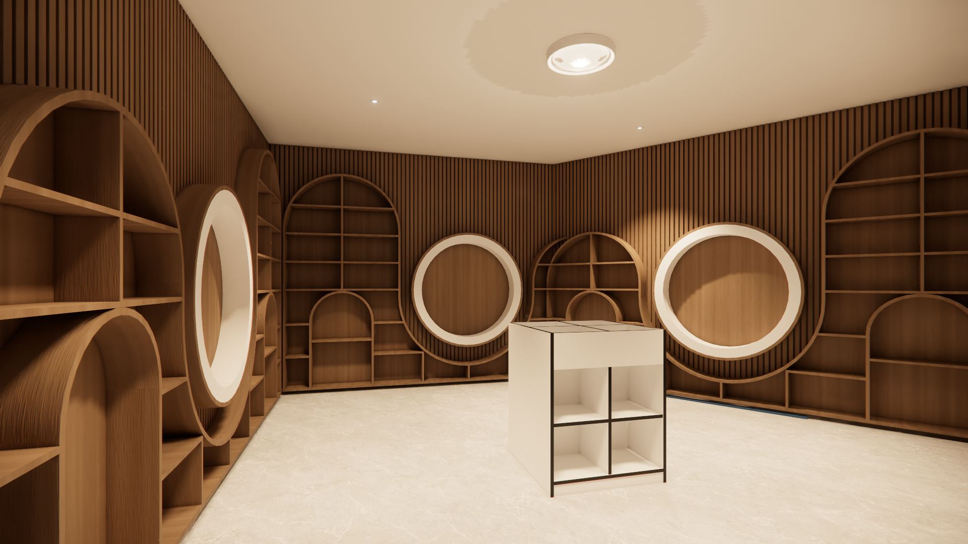 render this realisticly add books to the shelves and a toy to a few of the shelves