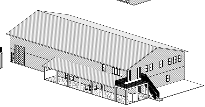 can you do a rendering based off the plans add some rural trees in the background and make the yard look nice