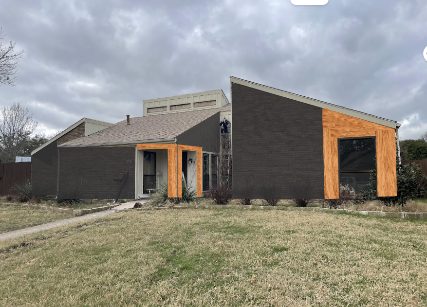 the black painted walls are black bricks and the wood parts are cedar wood cladding