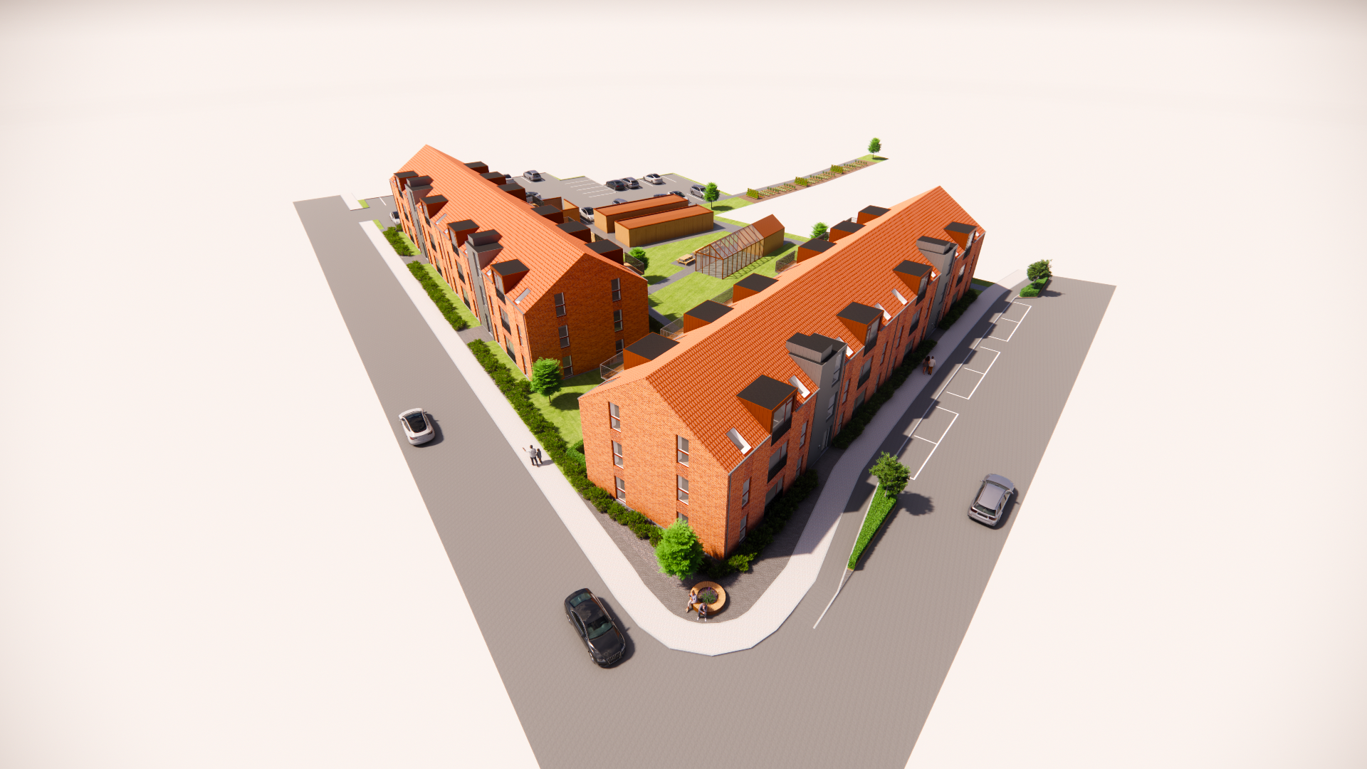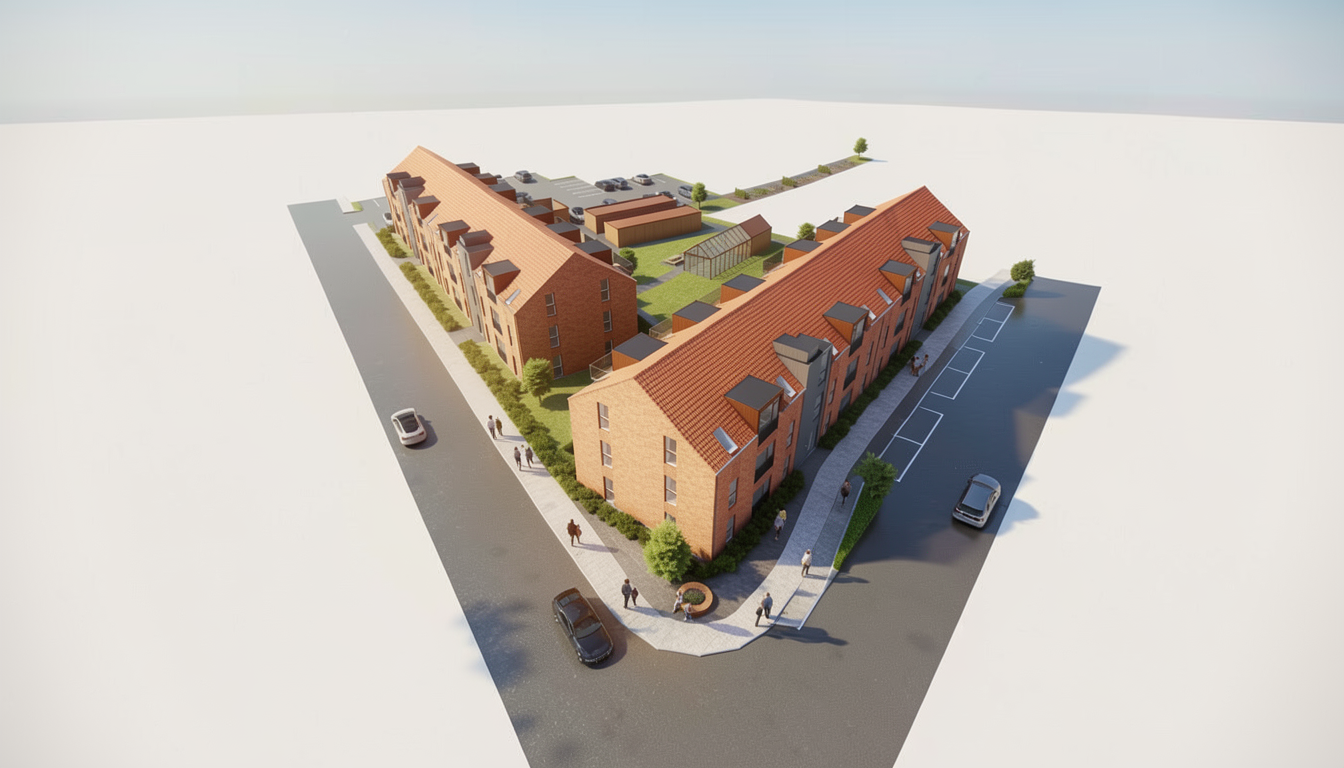 use the provided enscape render as base reference keep exact layout proportions and camera angle add people only on sidewalks
