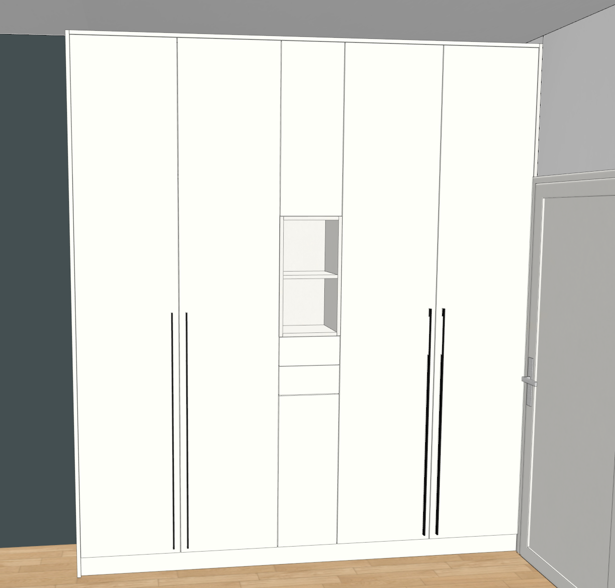 everything is white and the handles on the cabinets are gold