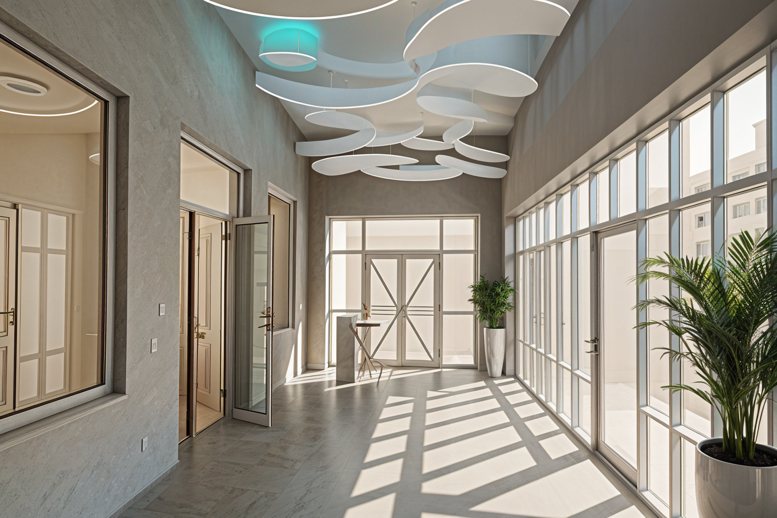 creative ultra modern design in light colors office lobby creative suspended ceiling with led lighting architecture