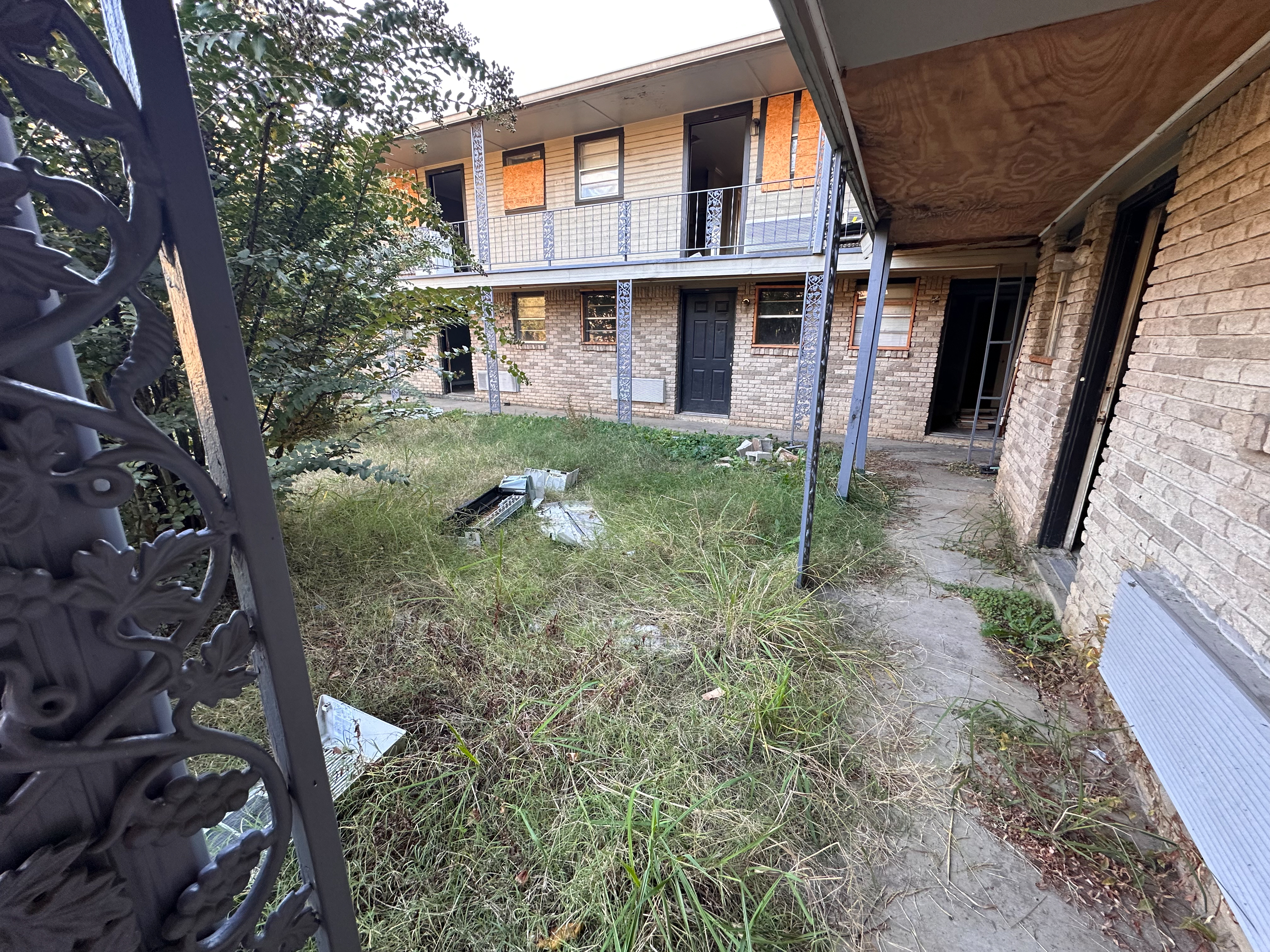 objective create a warm welcoming renovation rendering of the provided existing building while preserving all architecture massing structure openings and camera angle no new additions or removed elements beyond finish upgrades siding repaint existing siding in main siding color warm white or taupe e g benjamin moore swiss coffee or sherwin williams taupe tone uniform low sheen exterior finish trim repaint all corner boards fascia soffits door and window surrounds and any horizontal trim in trim color crisp white railings balcony posts and stair structures clean repair and repaint in railing stair color e g warm white soft charcoal or matching trim maintain existing profiles and spacing doors replace damaged doors with clean flush or simple 6 panel exterior doors paint in door color optional accent or match trim windows replace all existing boarded broken windows with new energy efficient single hung units white frames muntin pattern none 2 over 2 6 over 6 keep existing rough openings and proportions sidewalks and hardscape pressure wash repair cracks and spalls maintain layout add clean concrete control joints where appropriate replace missing pavers as needed no plan changes landscaping lawns replace all bare patches with healthy manicured turf lush even green fresh clean edges along sidewalks and curbs beds add simple low maintenance planting beds along building base and bordering sidewalks with plant mix e g boxwood dwarf holly liriope seasonal color dark mulch maintain clear access at entries and stairs foundation screening moderate height shrubs between windows avoid blocking egress site cleanup remove all trash plywood boards and debris remove weeds from sidewalks and expansion joints repaint or replace any damaged downspouts to match trim lighting subtle warm exterior sconces at entries where fixtures already exist 2700 3000k glow not overpowering do not add new electrical locations sky and atmosphere brighten sky to sky soft blue with light clouds late morning or golden hour warmth balanced inviting contrast materials realism high realism correct shadows reflections in new windows appropriate weathering level freshly renovated but believable keep existing roof form porches balcony geometry stairs rail spacing and site grading maintain all door window positions and sizes style and camera photorealistic exterior neutral lens original pov no dramatic perspective changes color balance warm neutral fillable variables replace brackets main siding color trim color railing stair color door color muntin pattern plant mix season grass tone late spring early summer sky negative prompt global do not alter the building footprint roofline or relocate doors windows no new additions decks canopies or signage no new light locations no exposed brick overlays wood slat rainscreens or modern cladding swaps no glossy reflective siding finishes no tinted window glass no busy patterns no overgrown plants weeds dead grass trash boards or construction mess