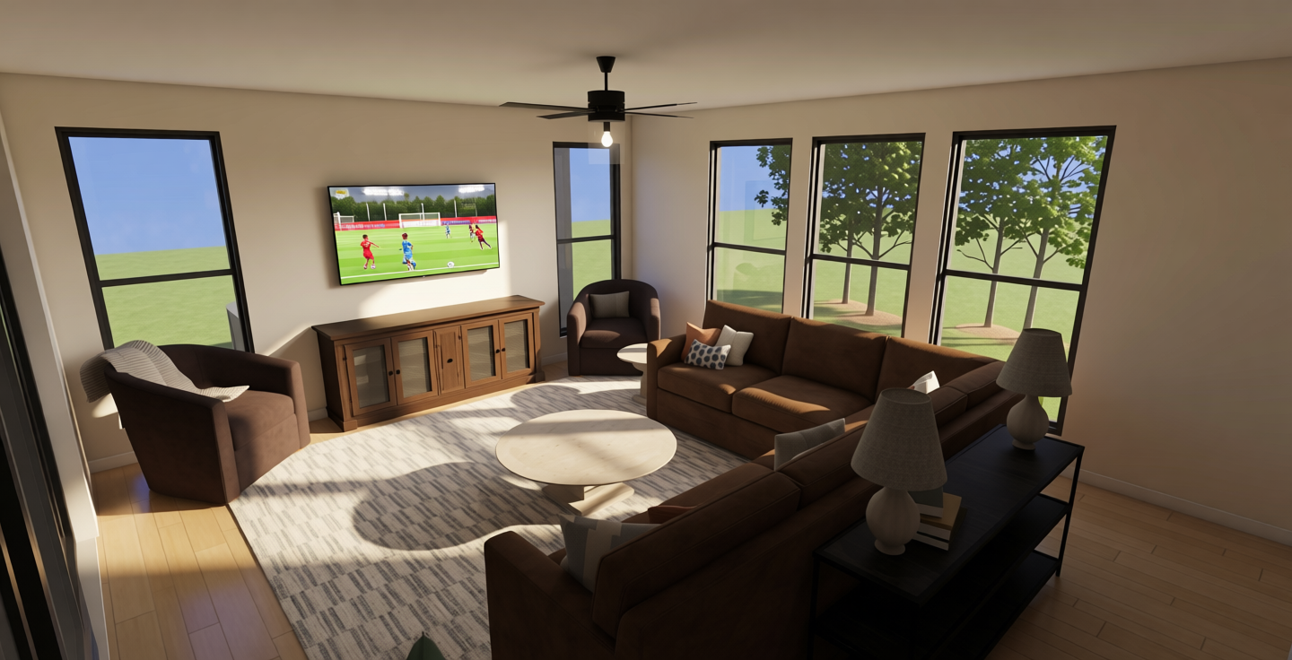 convert this floor plan into a architectural isometric 3d view of a full house show the space from an elevated angle with furniture walls and details visible use the attached floor plan image as strict spatial reference generate a 3d interior rendering of a luxury walk in closet suite organized around a central open courtyard very important respect the plan exactly the pink curved shapes represent custom millwork built in closets full height following the exact curved geometry shown the blue shapes represent freestanding islands at countertop height centered and positioned exactly as in the plan the courtyard remains open to sky lushly planted with palms visible from all surrounding closet spaces through large glass openings volumetry layout maintain the exact circulation paths wall curvature and proportions shown in plan do not move simplify or reinterpret the layout the millwork reads as architectural elements not furniture design language ultra luxury residential walk in closet sculptural curved millwork seamless joinery materials light oak lacquered panels integrated mirrors bronze or brushed brass details islands in stone or marble with soft rounded edges minimal visible hardware concealed lighting lighting soft indirect lighting integrated into millwork cove lighting following the curves natural daylight flooding in from the courtyard camera output wide angle interior perspective showing relationship between closets islands and courtyard eye level camera photorealistic high end architectural visualization calm refined gallery like atmosphere do not add extra furniture walls or doors beyond what is shown in the plan use the same furniture as shows on the plan do not change the orientation of the floorplan