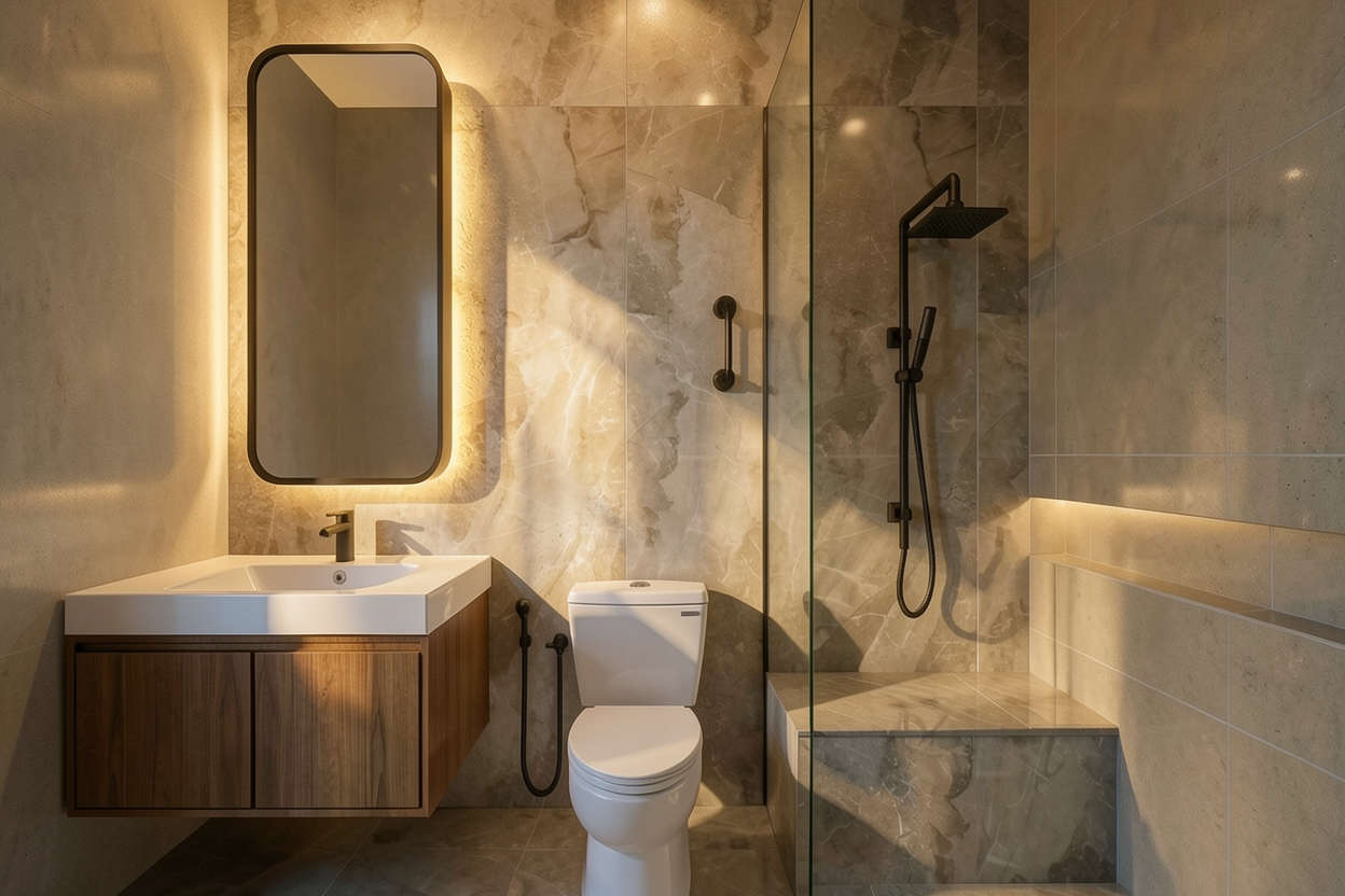 maintaining the current lighting add indirect lighting surrounding the mirror from behind