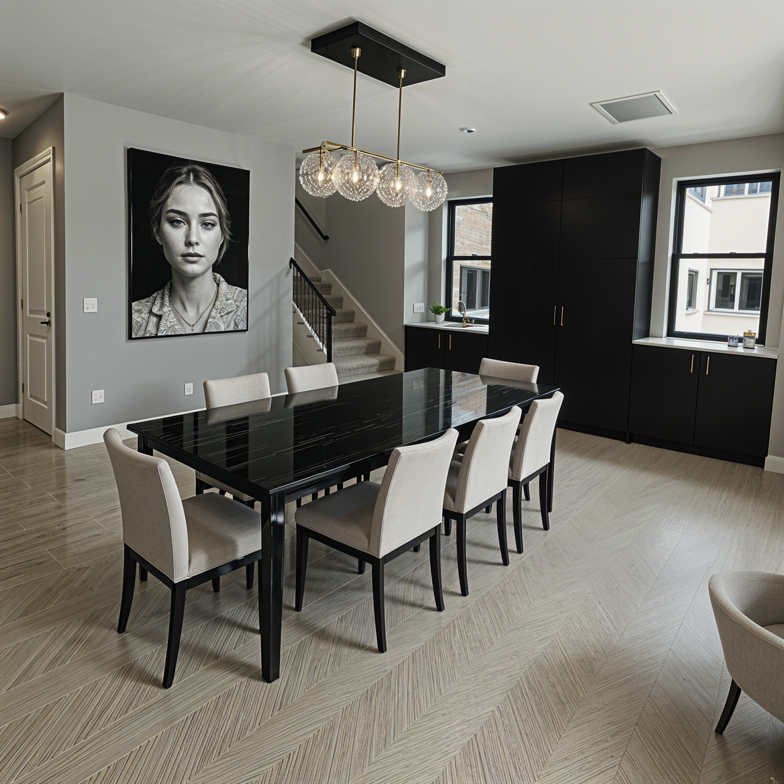 add ssmall modern golden sculpture on table top table top black marble black table legs