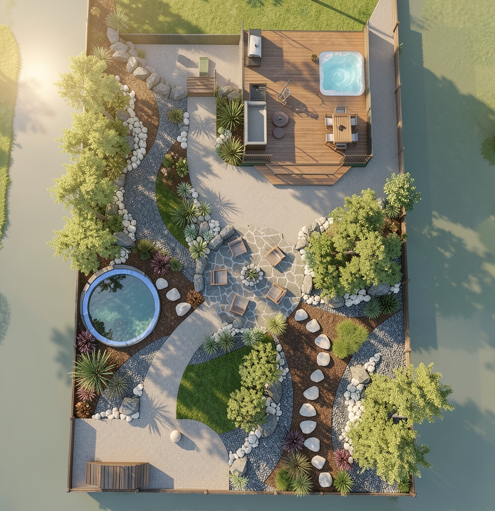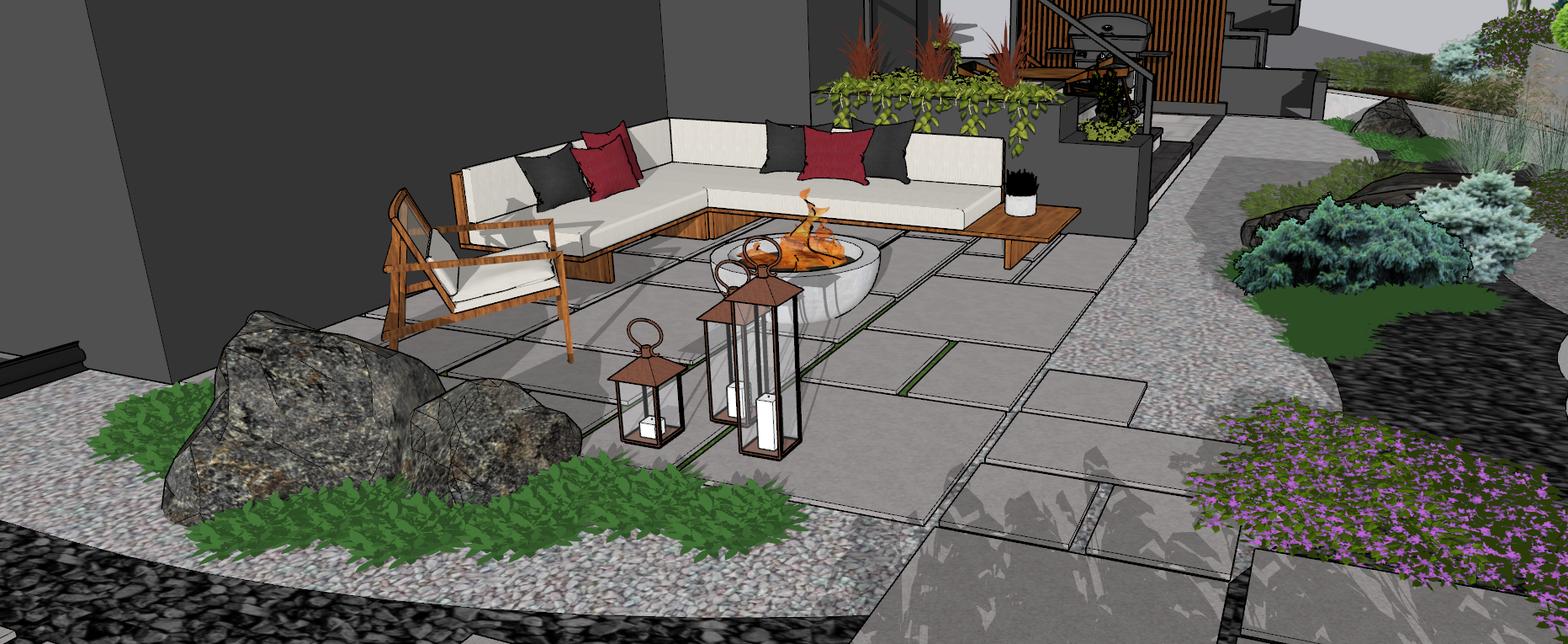 fireplace area in back yard