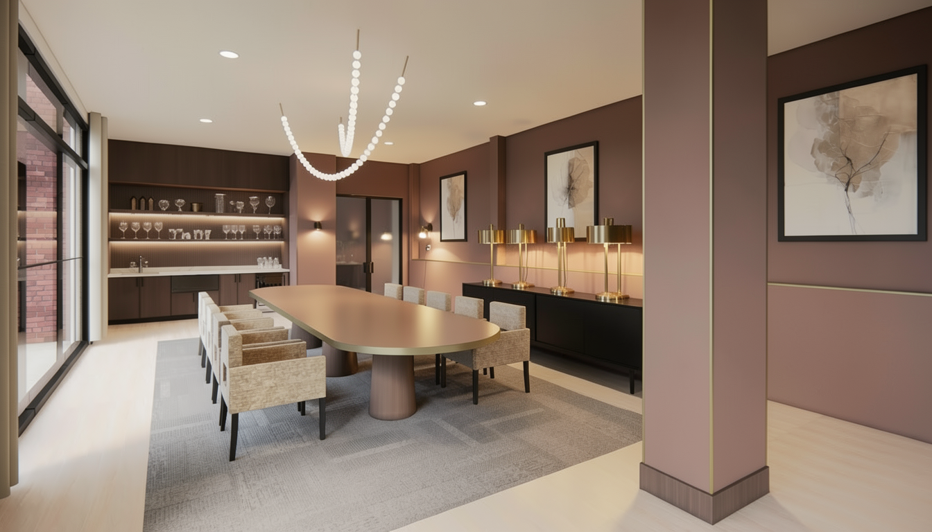 avoid golden hour avoid direct sunrays from the windows soft overhead lighting only add two modern gold lamps to the black credenza add a long plant to the center of the table