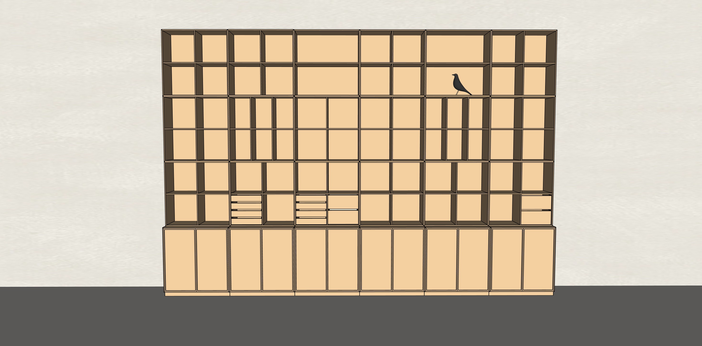 the materials is light oak the floor is concrete the wall is light grey