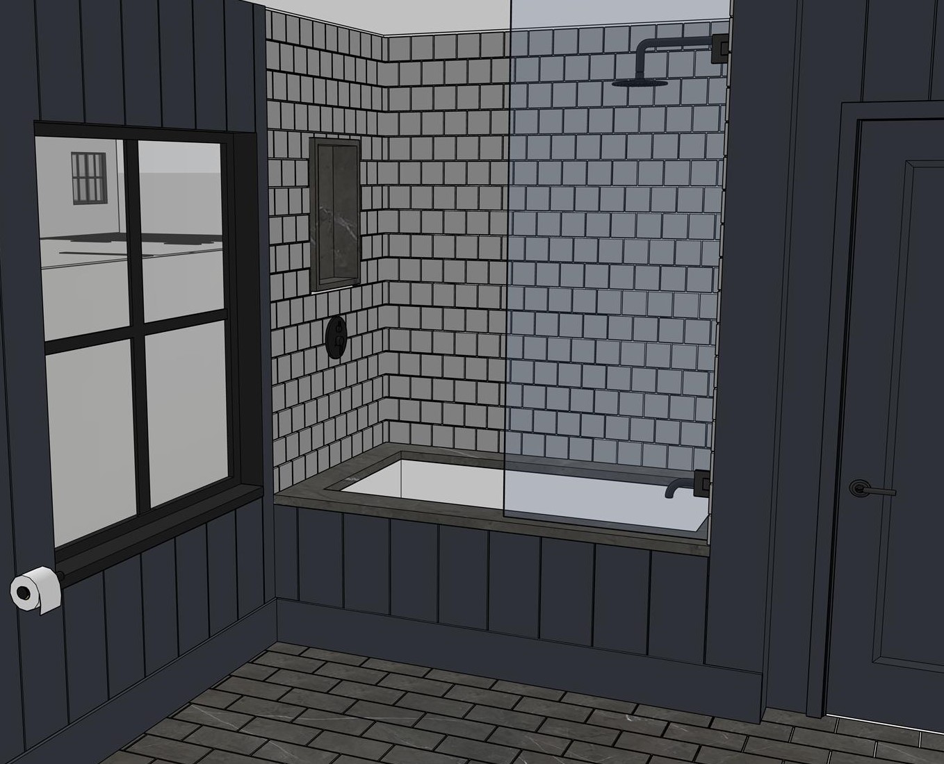 add daytime light for a bright and airy feel moody grey stone floors rustic grey countertop blue baseboard add overhead ceiling lights