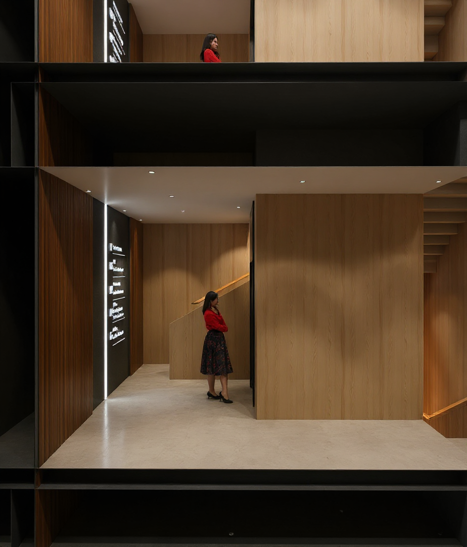 convert this floor plan into a realistic isometric 3d view of a office show the space from an elevated angle with furniture walls and details visible modern furniture colors beige and gray modern warm lighting add interior greenery elements use the same furniture as shows on the plan do not change the orientation of the floorplan