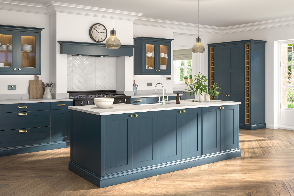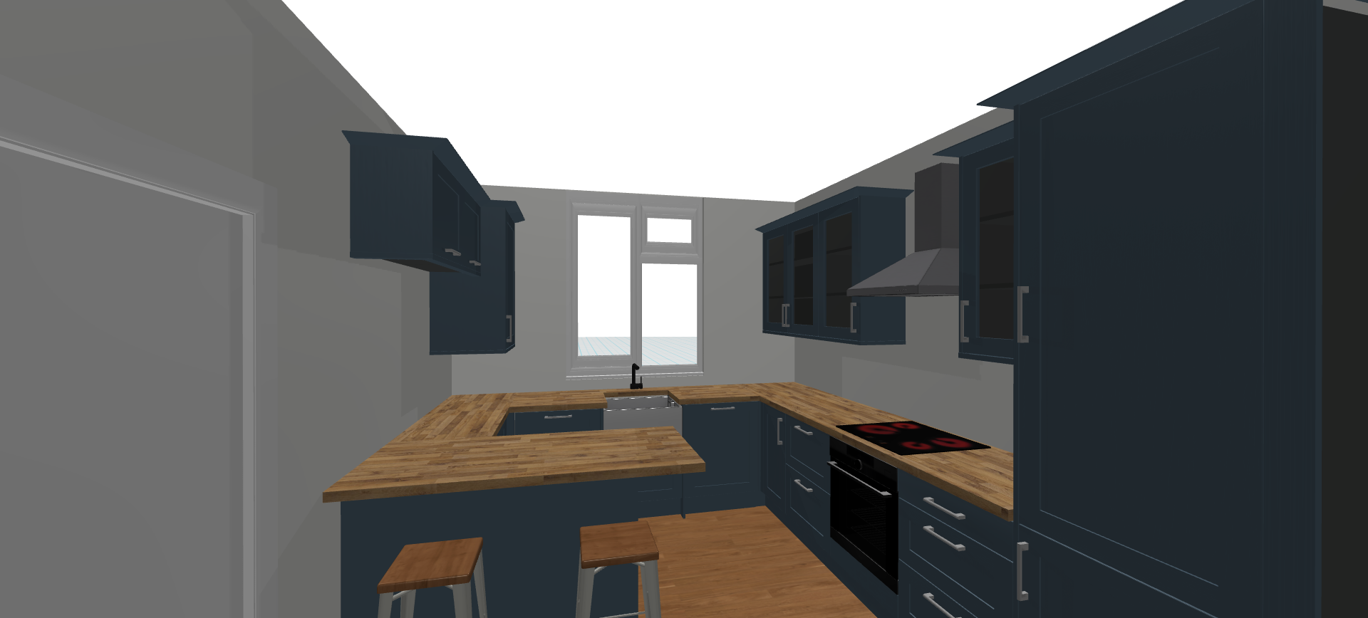exterior shot make shelves to go in between top box and worktop in the same worktop material and have led strips in bottoms