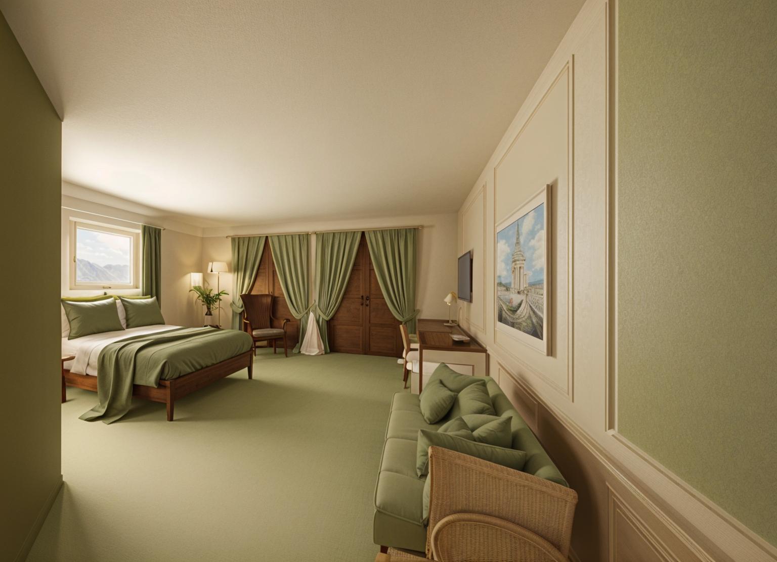 interior shot a visual enhancement of a warm minimalist foyer the walls are beige with a specific warm tone hsv 23 27 64 decorated with rectangular moldings of the same color integrated to create a subtle and elegant texture the floor is light wood with soft grain and matte finish on the left a curved white cream sofa with contemporary design sits next to a decorative plant with dark green leaves in a gray ceramic planter with a rustic finish on the right a light wood side table with rounded edges holds a lamp with a gray base and white shade while a minimalist rectangular mirror is hung on the wall above it two open doors painted in beige connect to other areas main comes from a white circular ceiling lamp with soft even light complemented by the warm light from the lamp over the table enhance the details textures of materials wall wood textiles and ceramics and colors but without altering the layout or adding new elements keep the style warm natural and realistic architecture