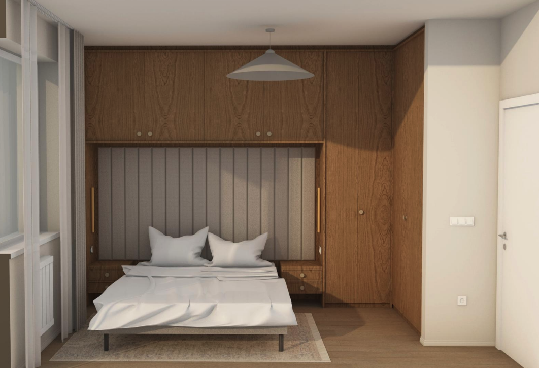 bedroom and wardrobe built in around with natural warm sunlight hyper realistic 35 mm lens shot