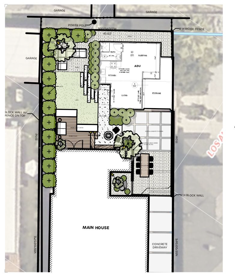 convert this floor plan into a realistic isometric 3d view of a full house show the space from an elevated angle with furniture walls and details visible convert this landscape plan in to an isometric visual do not show any interior floorpans replace the 3 chairs in the back left corner with a sectional sofa and remove the fire pit next to it use the same furniture as shows on the plan do not change the orientation of the floorplan