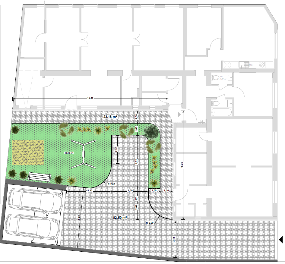 a manicured lawn layered flower beds low maintenance shrubs native plants stone pathway leading to the entrance