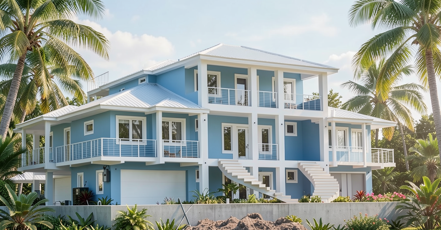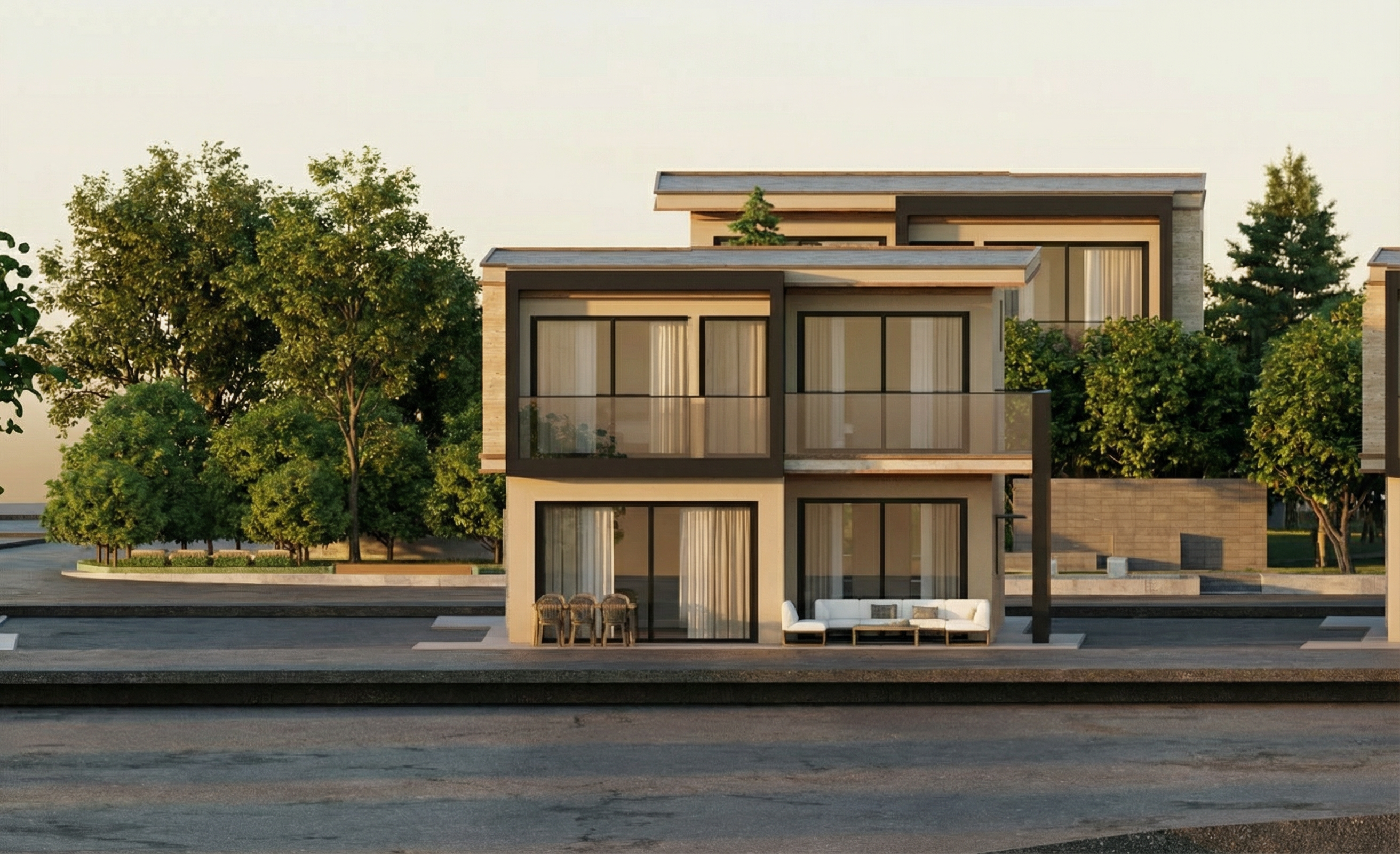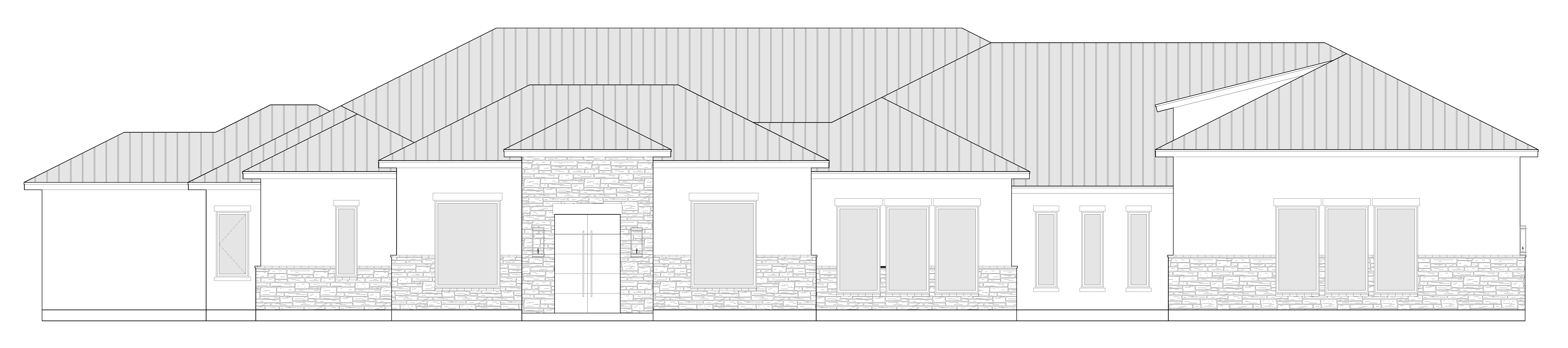 white stucco gray stone black wndow frames gray metal roof