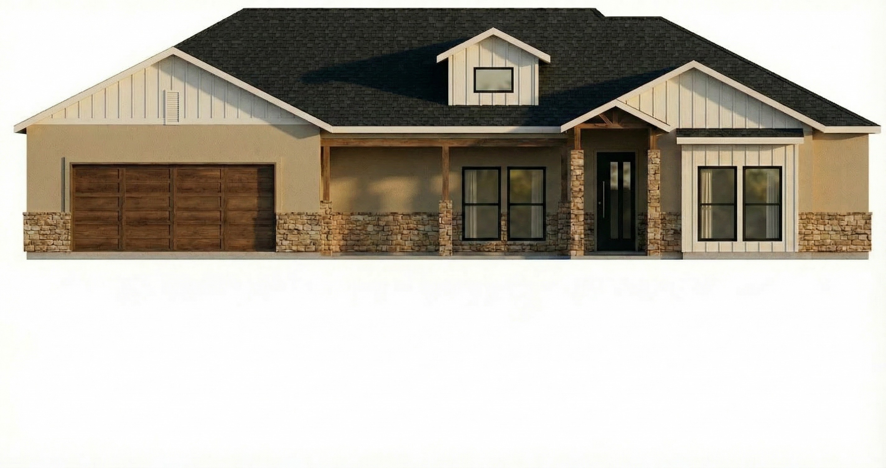 add a awning over garage door use black shingle on the awning and cedar beams supports