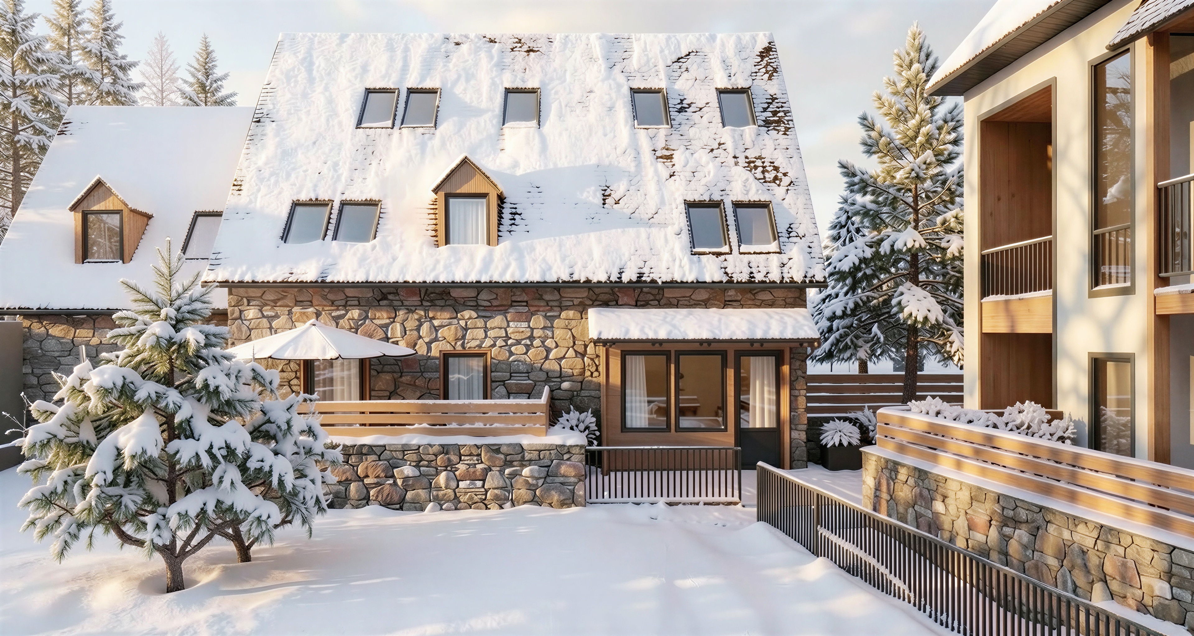 no modifiques nada del render unicamente quita un poco de nieve del jardin