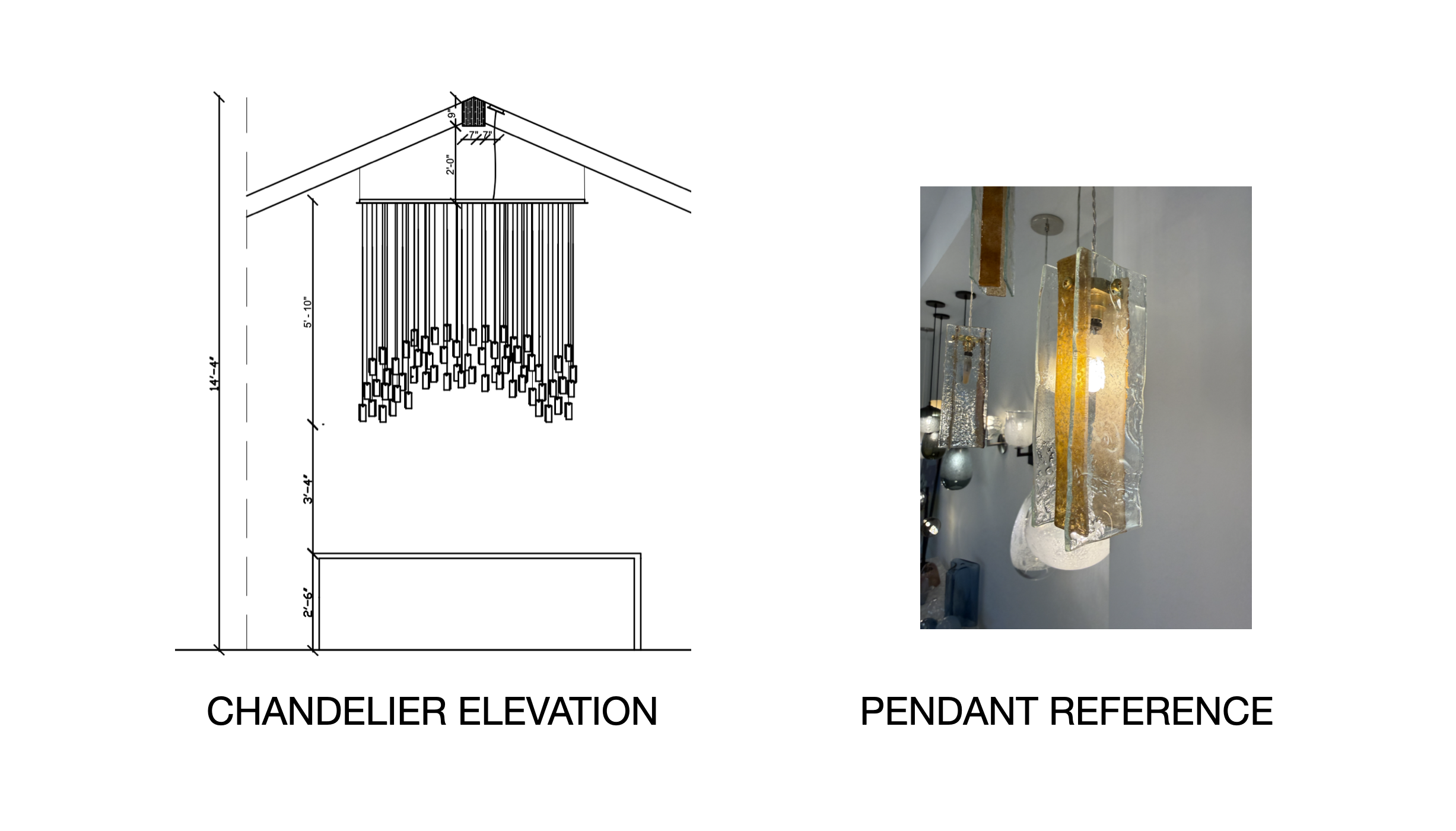 photorealistic interior elevation render based on the uploaded architectural drawing maintain the exact proportions scale and layout from the elevation replace the drawn pendant lights with realistic versions matching the uploaded pendant reference images soft warm architectural lighting realistic glass transparency accurate metal finishes natural light balanced with interior lighting minimalist contemporary interior neutral materials clean walls subtle shadows high end architectural visualization professional interior photography style no distortion of geometry no added elements photorealistic interior elevation render based on the uploaded architectural drawing maintain the exact proportions scale and layout from the elevation replace the drawn pendant lights with realistic versions matching the uploaded pendant reference images soft warm architectural lighting realistic glass transparency accurate metal finishes natural light balanced with interior lighting minimalist contemporary interior neutral materials clean walls subtle shadows high end architectural visualization professional interior photography style no distortion of geometry no added elements the left image shows the architectural elevation the right image shows the pendant light reference apply the pendant design from the reference image to the fixtures in the elevation