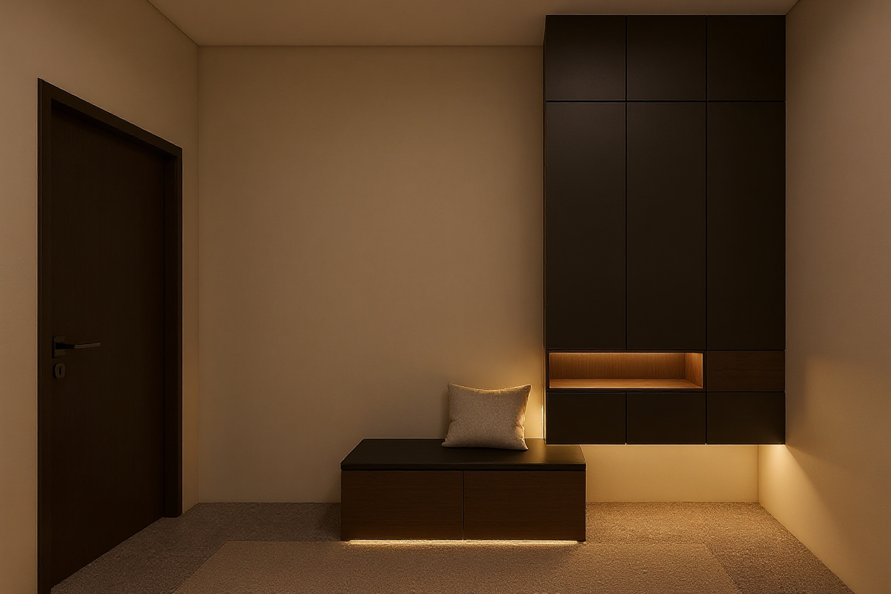 led lighting under the cabinets and around the mirror with a carpet mirror above the bench where is the pillow it can have a subtle led frame if you want a more modern style