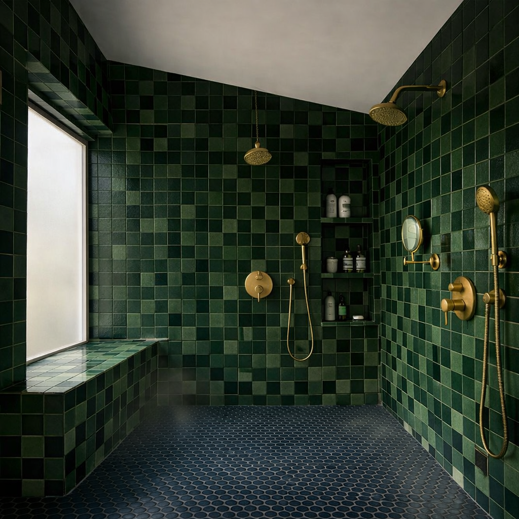 maintaining everything exactly otherwise please make the green wall tile a uniform color