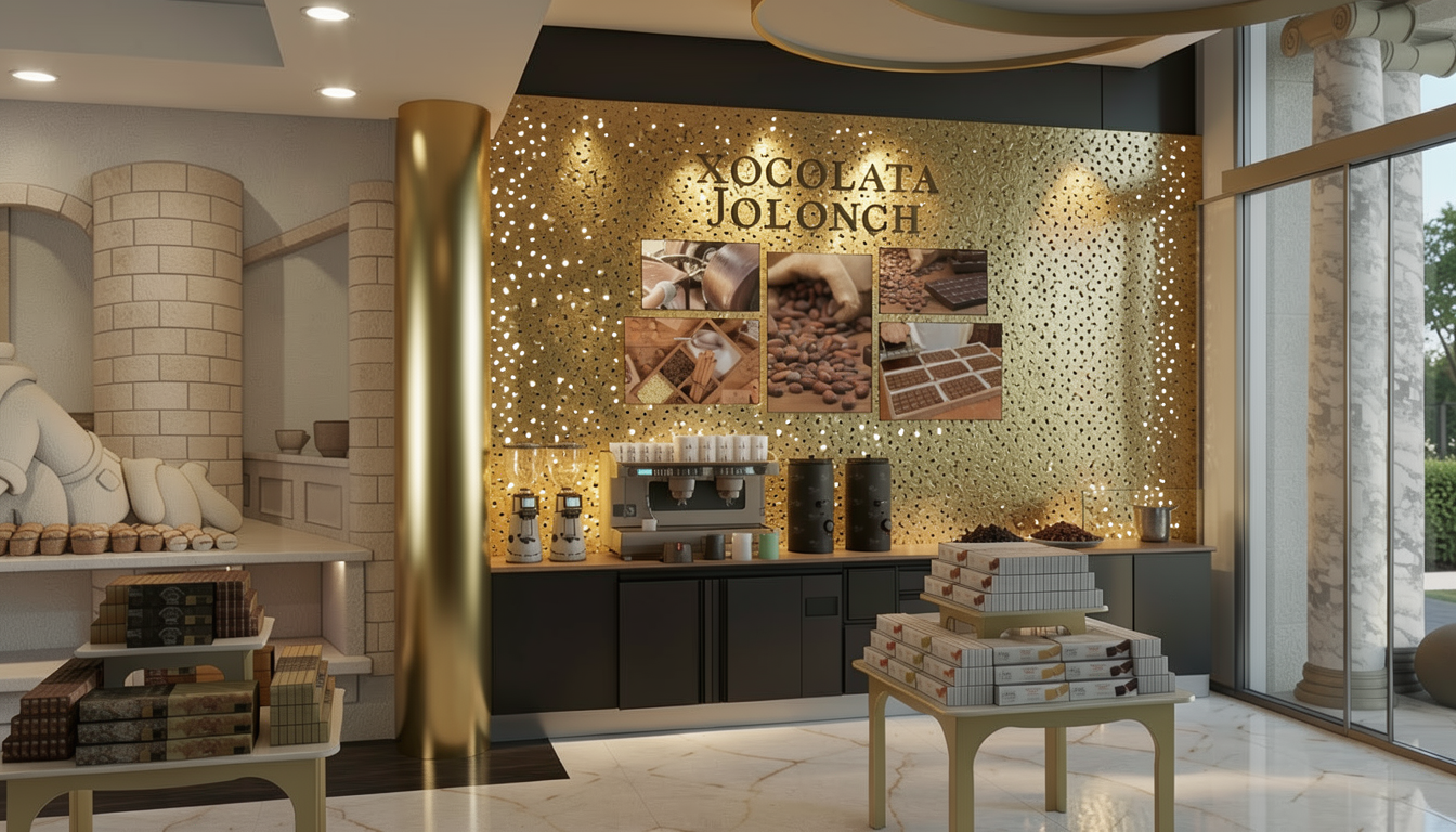 render senyata mungkin dengan panekl warna krim polos bukan kayu dan dinding warna off white lantai vinyl krim dan panel di belakanag ubah jadi dinding polos tanpa panel pola pegangan tangga warna hitam ada lampu indirect di atas pegangan tangga dan lampu sorot kecil plafon putih tempat pajangan bolong tembus