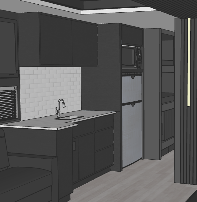 tour bus rendering from sketchup dark grey walls kitchen focus