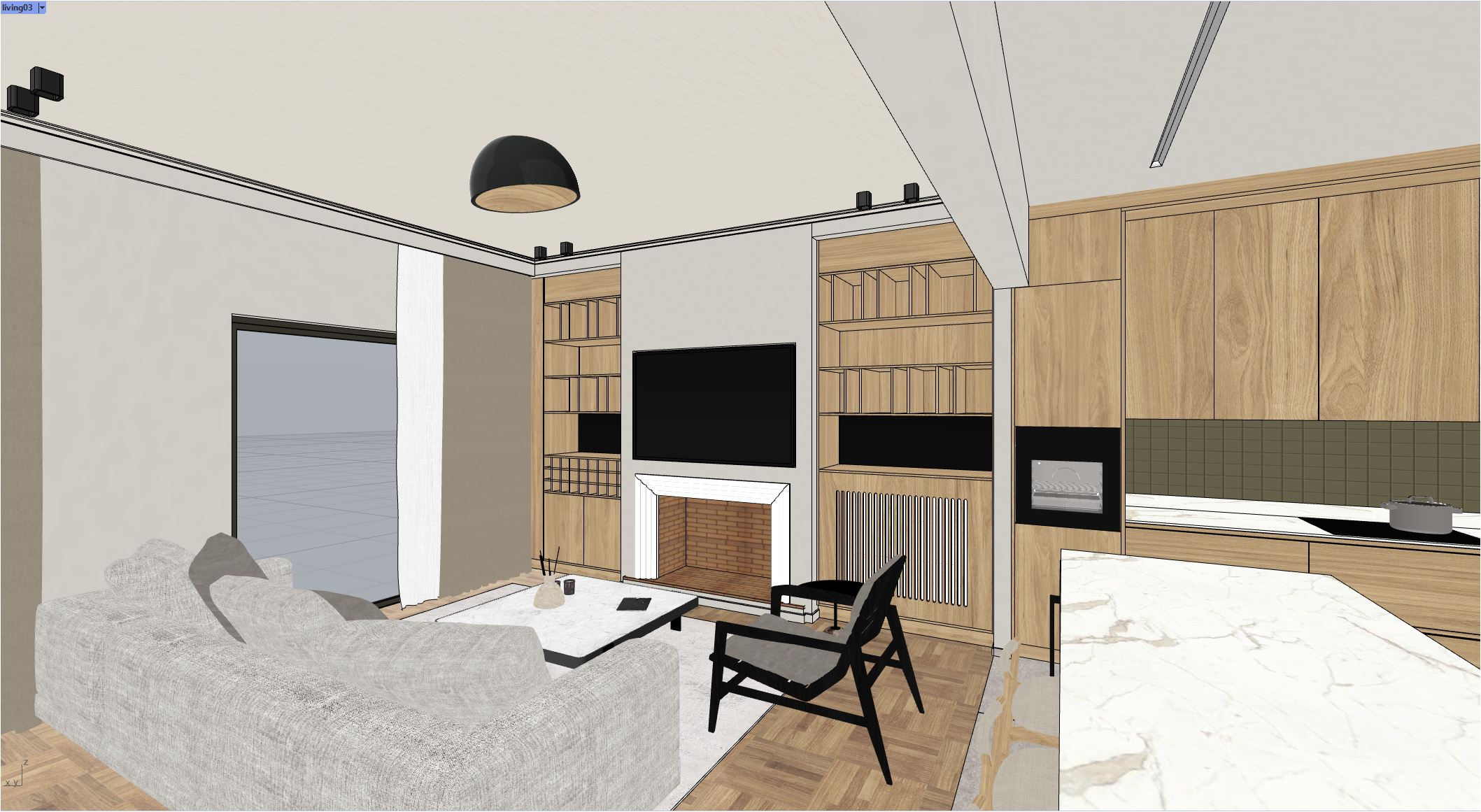 add decorative items books inside shelves keep the excisting lights do not add different types physical day light keep existing materials high resollution image switch off interior lights at the left ceiling there is a plasterframe and black spots as there are