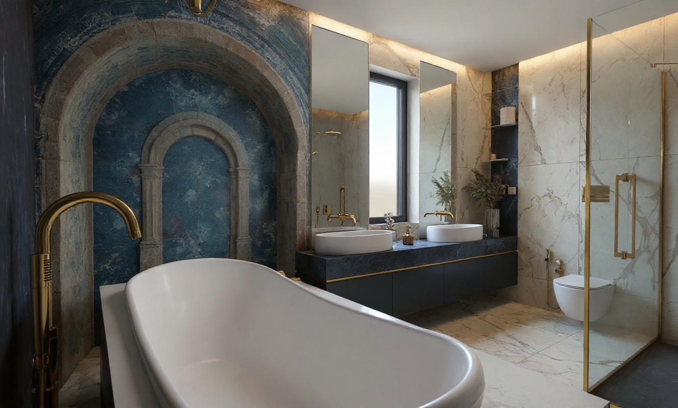 turn into a single image of a nz style barn living room stone fire place in centre of room gabled ceiling cosy interior natural light