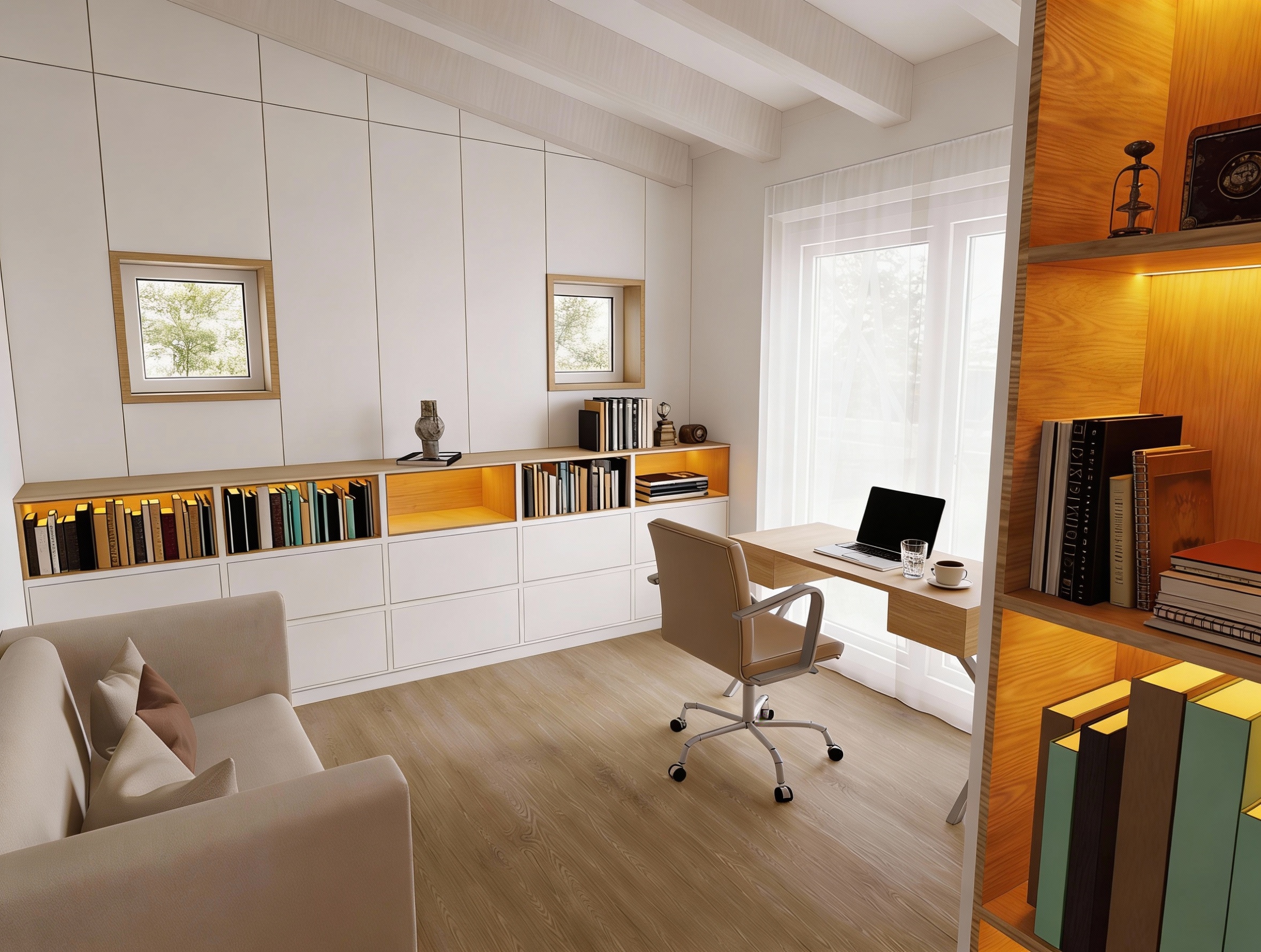 without the wall shelf above the low sideboard just plane white wall and the windows