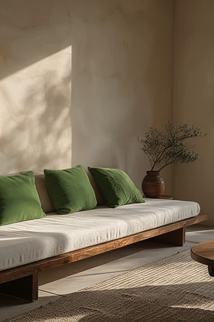 change the pillow into moss green color that color slightly yellow mix with green not very green also dont change any shape make hd and realistic
