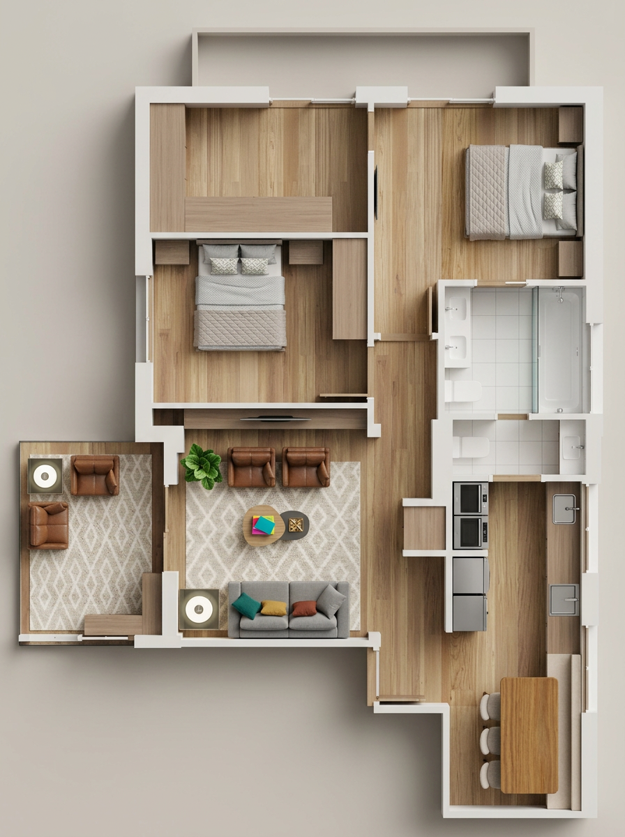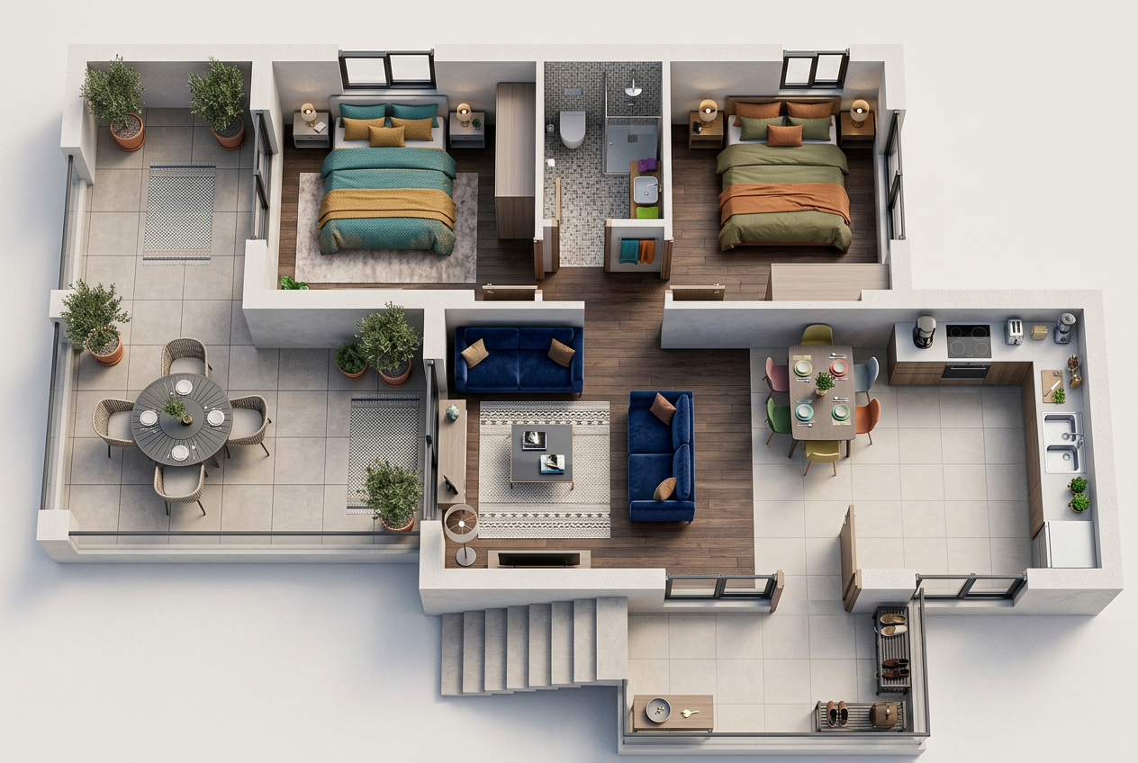 modernist interior shot modern minimalist render and add decorations and warm led strip lights on shelves for dramatic lighting and make the natural lighting facing the tv console cabinet architecture
