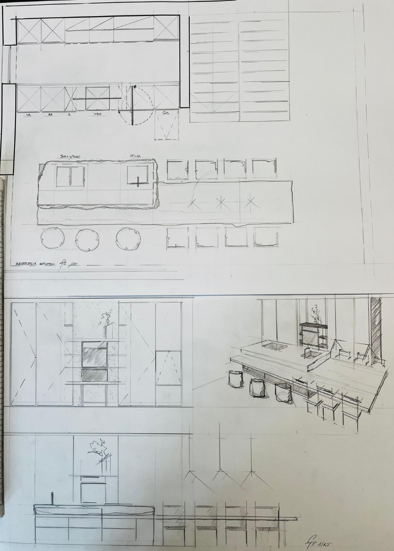 k chenarbeitsplatte in grauen stein schwarze fronten heller raum schwarze deckenleuchten