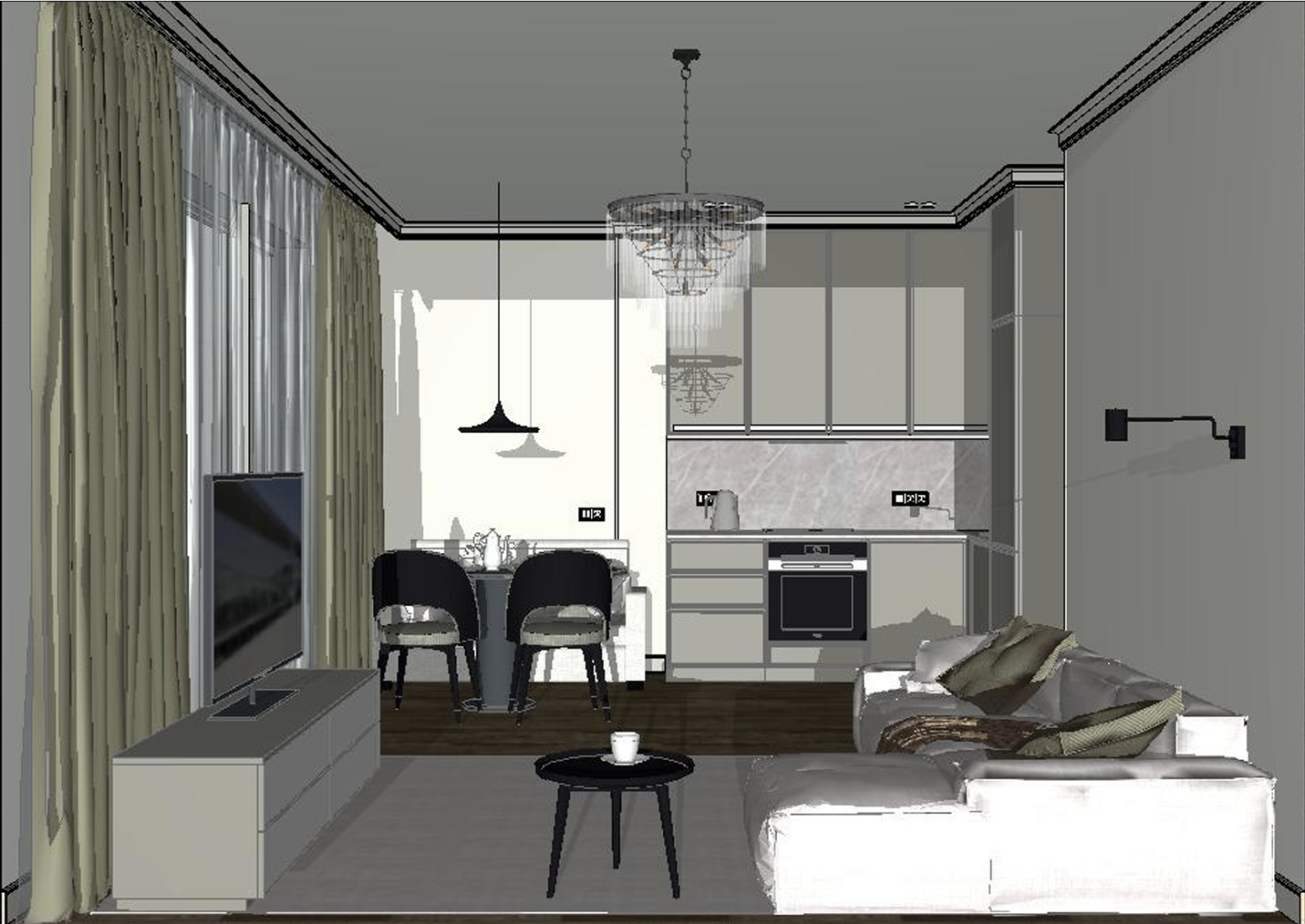 transform this image into a realistic high end interior photograph preserve the original architecture and spatial layout exactly do not change walls openings ceiling heights or proportions use a contemporary style with subtle neoclassical and art deco elements natural lighting soft shadows refined materials elegant details and a premium magazine quality look the space should feel sophisticated timeless and realistic as if captured during a professional interior photography shoot