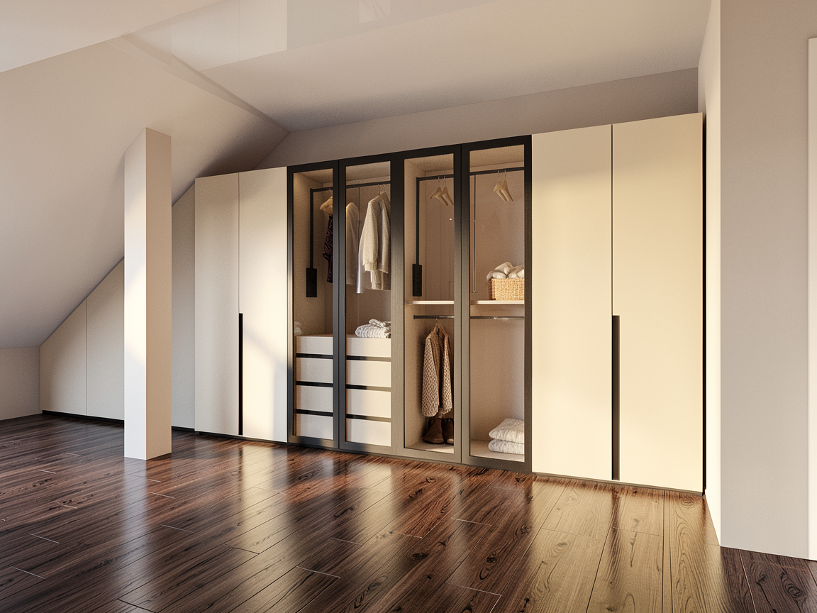 render senyata mungkin dinding krim white plafon putih lantai marble krim agak abu dan tarok pajangan di rak kiri dan kanannya dan lampu indirect