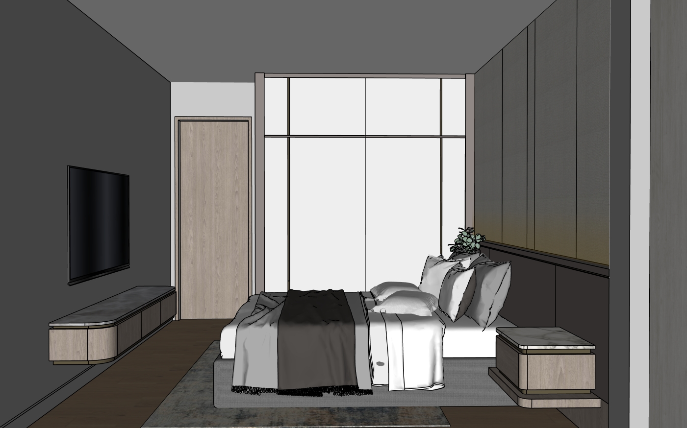 behind bed is wall
